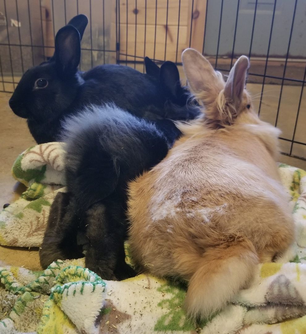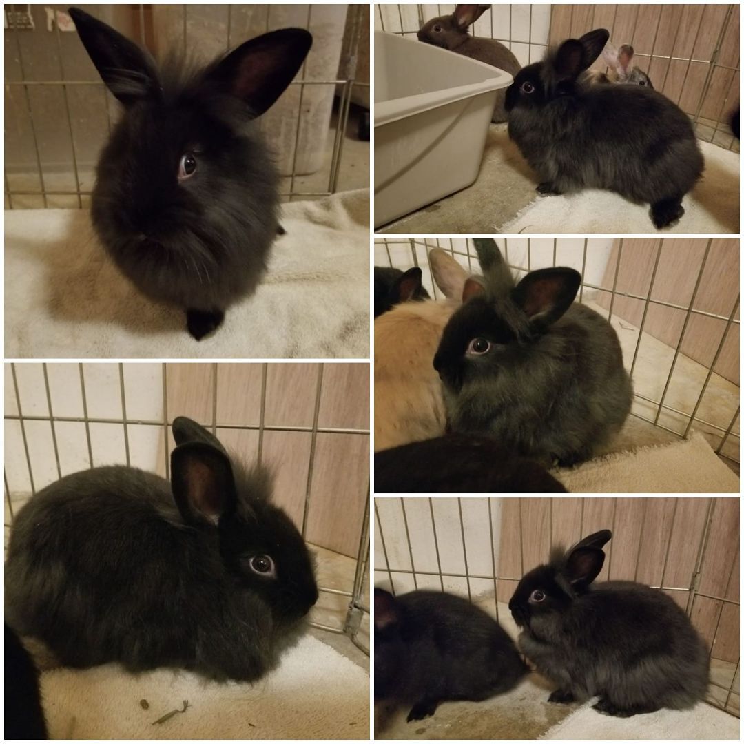 To adopt or schedule meet & greet, please go to www.furrypurrsrescue.org and fill out our free online adoption application (will be a cat app). Application required before viewing. 3 young bunnies up for adoption. 2 girls & 1 boy. Birthday: 10-13-22 Dutch- black lionhead/mini rex mix-male Brie- tan lionhead/mini rex mix- female Chai- black mini rex mix-female Their mom, Maxine, is also available. See her post on our petfinder for details. All 4 rabbits are bonded, must be adopted in pairs. Very socialized with people & cats. Some are very outgoing while others are timid and need time to bond with you. Well litter trained. Looking for loving, inside homes. Male rabbit is neutered already.(no adoption fee for male) Rescue will spay female rabbits before adoption once adopter chooses which female(s) to adopt. Rescue will cover $100 of the $260 spay fee. Spay/Adoption fee for one female includes spay, microchip, & vaccination. Total fee: $160. Male is free.