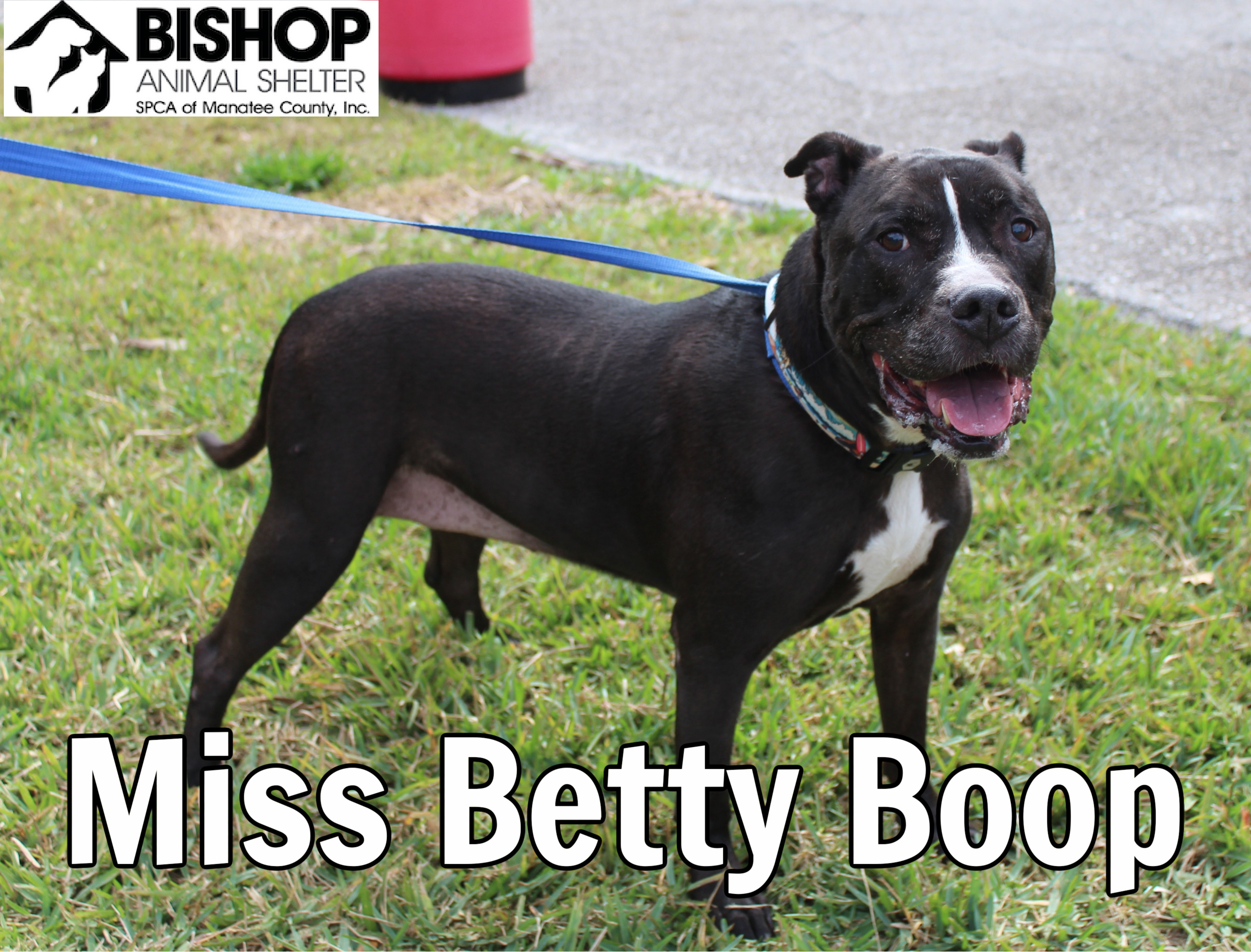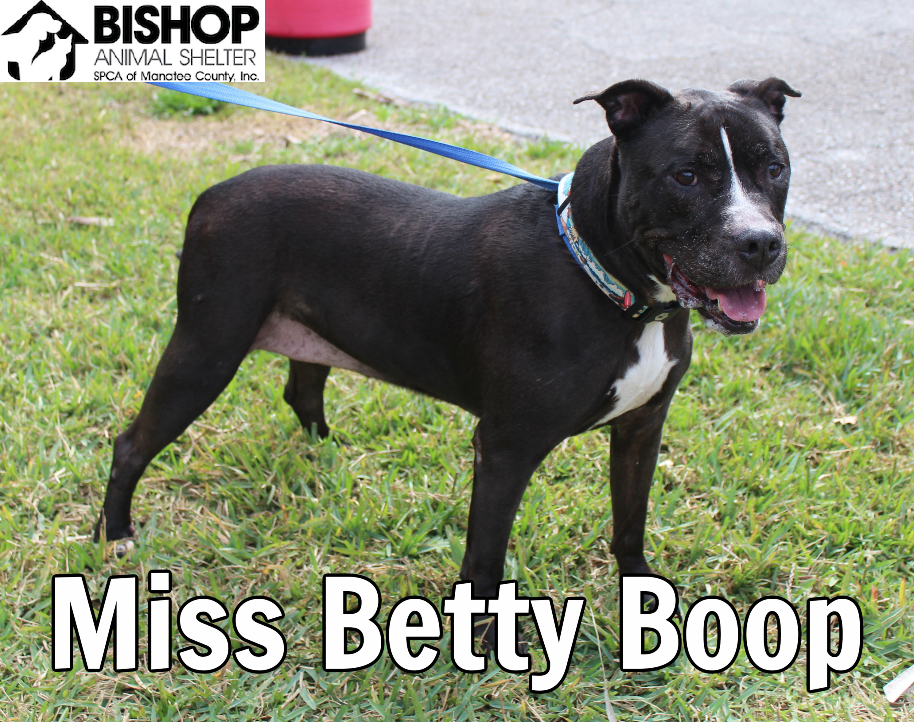 Miss Betty Boop is an 8 year old female mixed breed. She weighs 60 pounds. Miss Betty Boop previously lived with another large female dog. We always recommend a meet and greet with any resident dogs. At the shelter and while on leash, Miss Betty Boop met a dog-friendly cat and she more or less ignored the cat. We always recommend caution when introducing a dog to resident cats because behavior can be different in a home. We have no information on how Miss Betty Boop behaves around children. We would recommend a meet and greet with any children in the household or children that visit often, such as grandkids. Please call for more information or to make an appointment to meet Miss Betty Boop. (Updated 3/1/21).