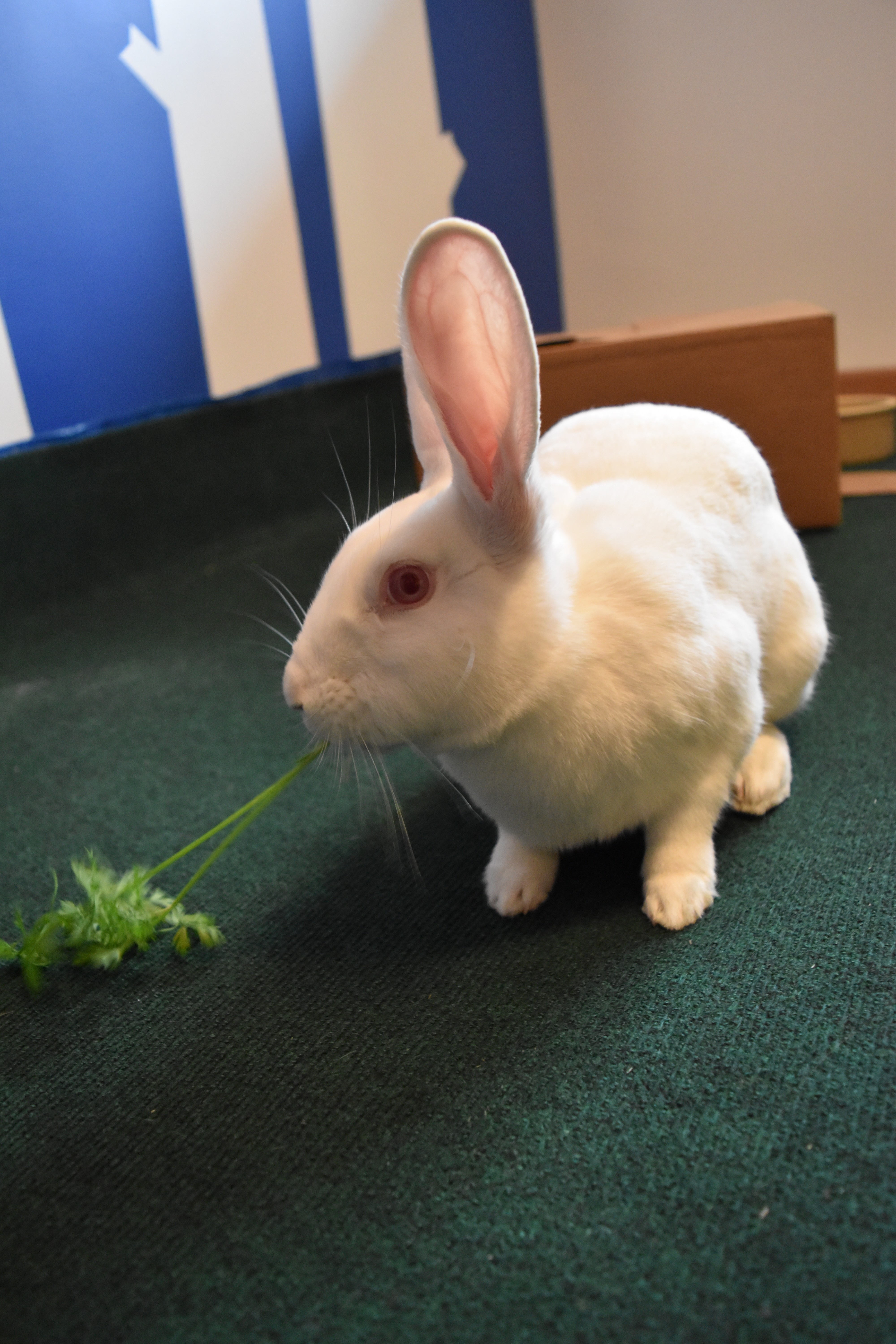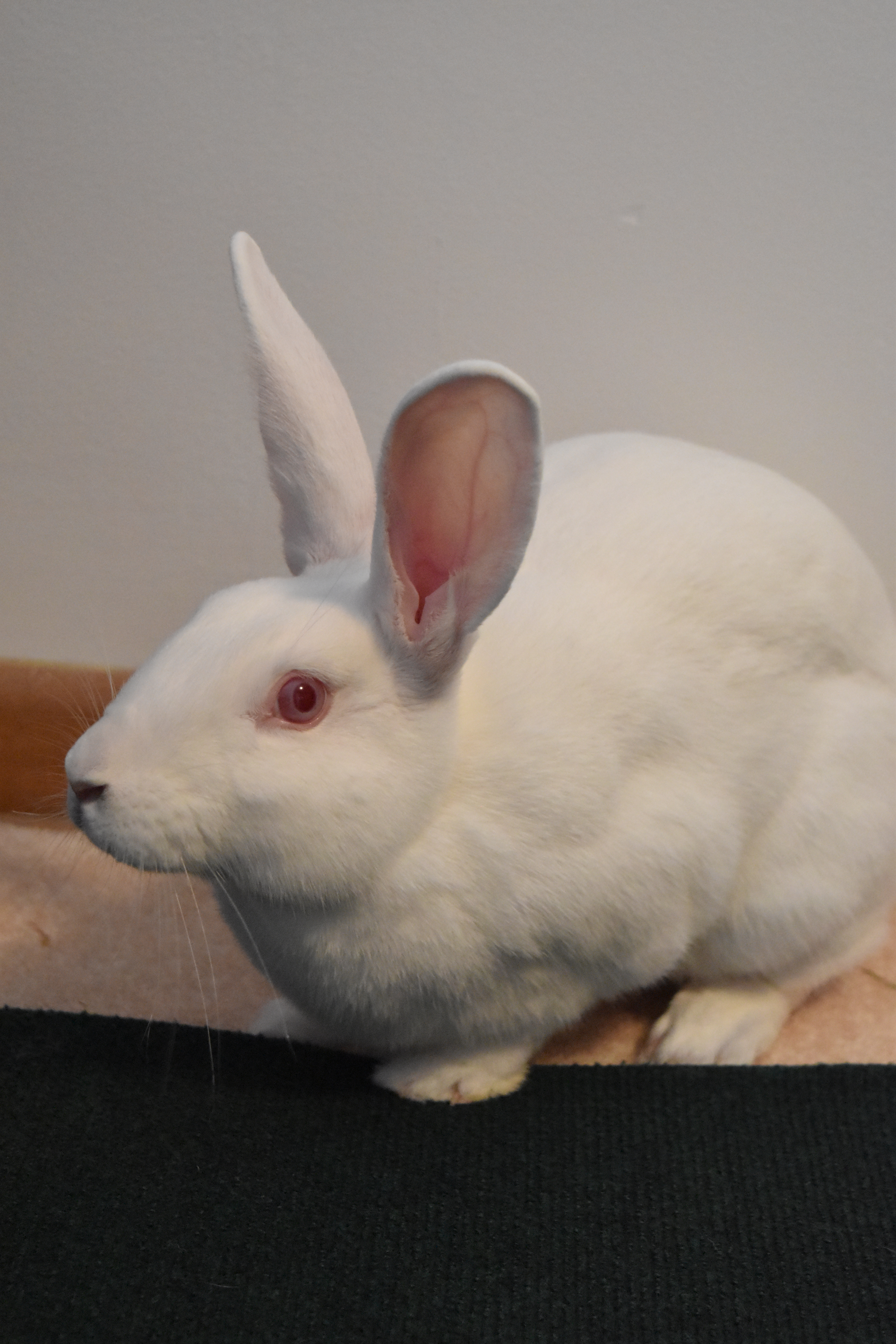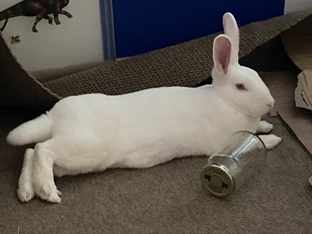 Usagi is a fabulous young bunny who is less than a year old. She is very friendly and active, loves head pets, and loves running around. Usagi is also very eager for human attention (although she doesnt like being picked up). She is an enthusiastic eater and loves her food and salad. Miss Usagi has excellent litter box habits and is very well behaved. We think she’d make an excellent free roam bun due to her clean nature and because she likes to be with her human when she’s not busy running around making forts out of towels.