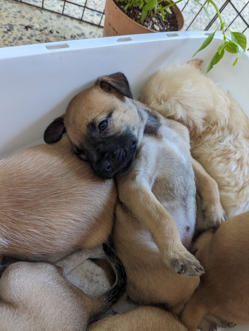 This is LAFFY TAFFY! She’s about 8 lbs and 10 weeks old as of January 6, 2024. Her mother is 19.2 lbs. Our founder rescued her herself with her bare hands off the side of the road! Her siblings and his mother were strays only a couple of weeks ago. They are lucky to be alive and loving their new life. We have a soft spot for Laffy Taffy! She’s the only girl in the litter and her personality really stands out. The volunteer who took pics said she was her favorite because she was such a goofball and is so loving and affectionate! She is currently living in a home and getting used to a routine. If you feel that Laffy Taffy is a good fit for you/your family, please complete an application from our site, miraclesforsatosrescue.org. Feel free to email us with any questions at: MiraclesforSatosRescue@gmail.com __________________________________________ PLEASE NOTE: This dog is currently in Puerto Rico. Once an adopter is fully approved, transport will be arranged to New York/New Jersey. We strive for our dogs to be adopted into the right home. The best fit for the dog is our priority. Please make sure you are ready to properly exercise and give a dog all it needs for fulfillment. Your ongoing time and day-to-day commitment is the most important thing in caring for a dog. In addition we cannot guarantee breed of any dog or expected adult size of a puppy. Please note that even house trained dogs will need help transitioning to an adopters home and schedule. Thank you for understanding.