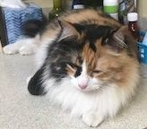 Female- She is beautiful- 3 years old fluffy hair, weighs 12 pounds. Spirited but loves her human Best as only cat as she is cat selective.