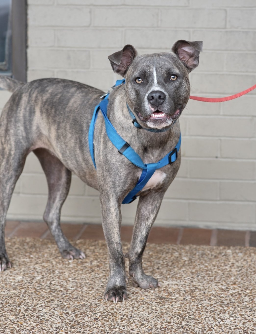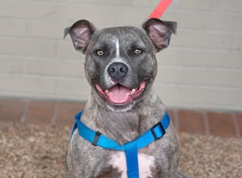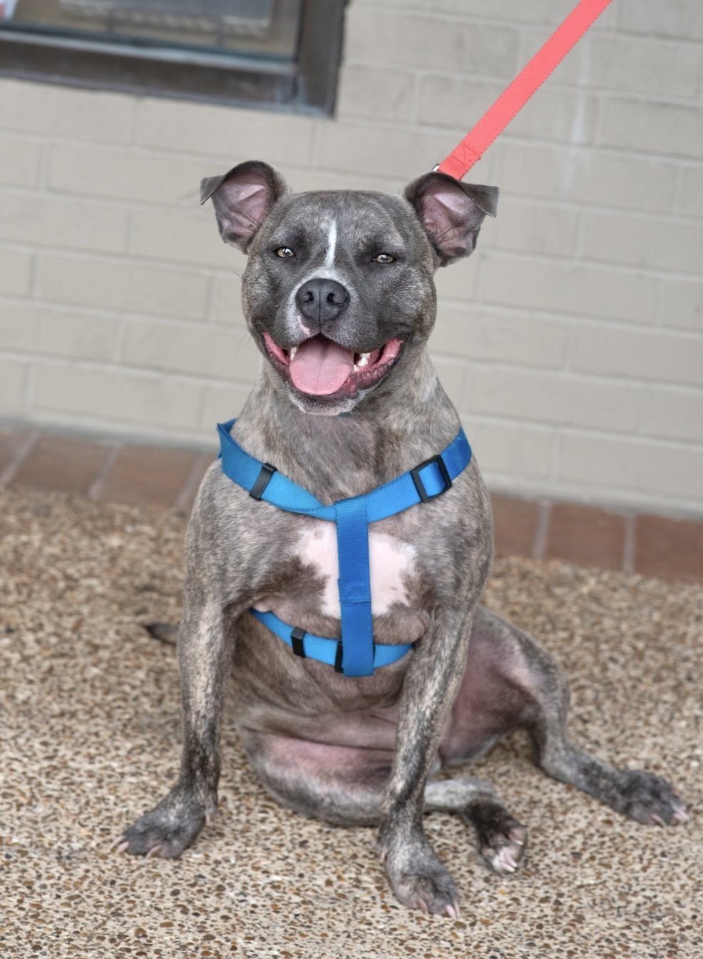TABBY IS IN HER FOSTER HOME IN MEMPHIS, TN AND WILL BE TRANSPORTED TO NJ ONCE SHE IS ADOPTED! Tabby is a 1.5-year-old 50lb "tank" of a girl who was pulled from a very high kill shelter in Memphis, TN. Check out that sweet face and amazing smile! She is so playful and entertaining to watch. She loves romping around in the backyard with her GIANT 160lb foster friend without ever missing a beat. Pictures really do not do her color justice; she is a gray and cream brindle, and she is beautiful! Tabby loves to be outside with her foster family. She loves fetch, chewing bones, or just hanging out on her outside bed. She is both crate-trained and potty trained. She is kept inside a crate when her foster family is out, but at night she sleeps on a dog bed in the bedroom with them. She has, however, exhibited some resource-guarding issues with her favorite bones and chew toys around other dogs. Like any new addition, she will need to be introduced with care and supervision to other pets in the home. She accepts corrections well and is eager to please. Tabby loves affection and will happily climb in your lap given the slightest invitation. She can never get enough belly rubs, hugs, or kisses. This sweet girl is ready and waiting for her ideal adopters to open their homes and hearts to her. She is fully vetted including spay, microchip, up to date on vaccinations, as well as rabies shot. Adoption fee of $550 includes the transport to NJ. We use a licensed and registered USDA transport company that will bring Tabby up north to her new family. If you have any questions, please email us at: newbeginnings_animalrescue@yahoo.com You can apply to adopt here: www.newbeginningsanimalrescue.net THANK YOU FOR CONSIDERING ADOPTING A RESCUED PET