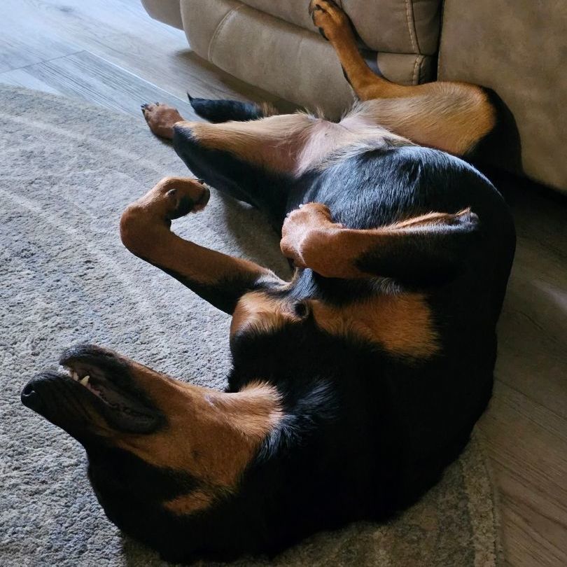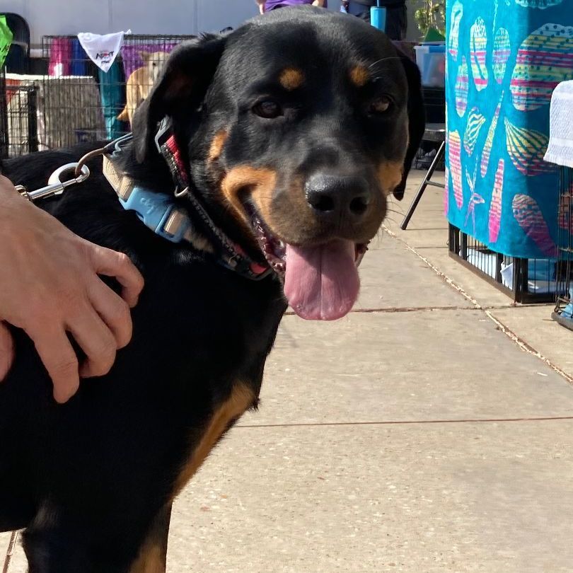 This sweet, cuddly girl is June! She is a Rottie girl and weighs 87lbs and loves to lean into you for attention. She is quite mellow with a wonderfully sweet disposition. She is about 1 and 3/4 years old. June is a very sweet and loving girl who is crate and house trained and she even had her own cat-buddy. She was an owner surrender due to lack of time and no fault of her own. We love that she still has her tail - it was not docked and looks beautiful! She walks great on a leash and is not dog-reactive. June is sweet with kids, dogs and even cats! This girl would love to hang out with you or go on hikes or be your running partner. She is a wonderful family dog! June is up-to-date on all her vaccinations and is spayed and microchipped. Her adoption fee is $425. Please email ular.sandra@gmail.com for an application.