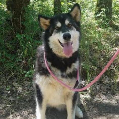 Nakita is a curious and intelligent 8 yo husky/malamute who is affectionate and loves her cuddies and treats. If she gets the exercise she needs-she is happy to lounge around the house near humans. Nakita is leash reactive to most other dogs so will need a strong, dog-savvy person with good handling skills. She is a dominant female who can get very jealous and should most likely be the only dog in the household. She would love living with an active family; she is housetrained. Nikita is very good with small children/newborns-she is tolerant when they pull her tail. She has lived with a male, obsessive, deaf cattle dog and was amazingly tolerant with him herding her all the time. Nakita is a very lovable dog and would be happy staying home and playing in a well-fenced large yard, and being in the home cuddling with her people! Nakita would love to meet you; fill out an application so we can make a plan!