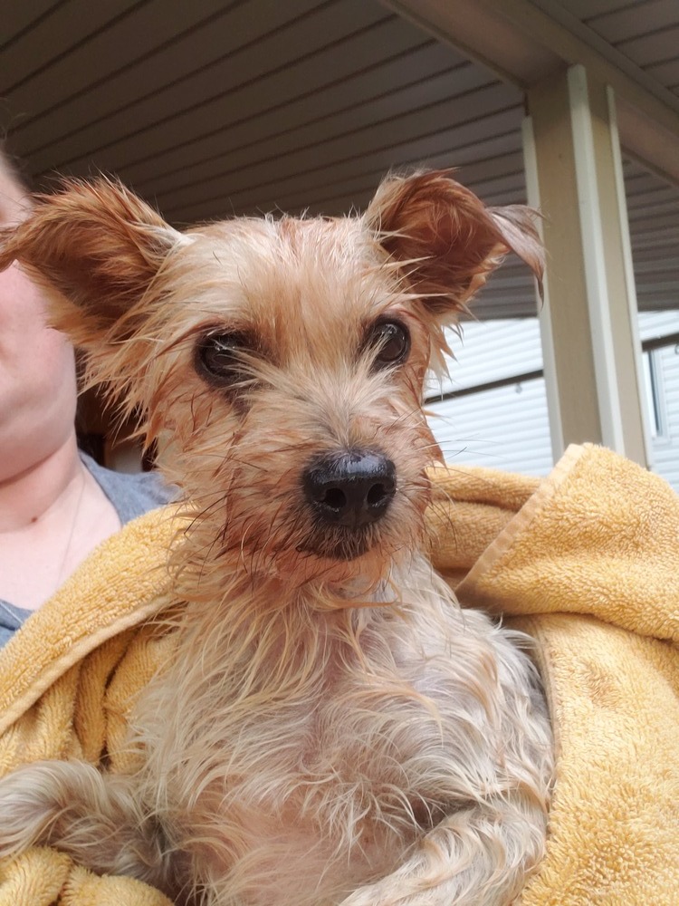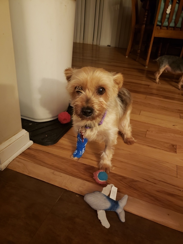 UPDATE 11/14/23: Nastia has been battling a "sore" on the bottom of her foot for a while. We tried many treatments, but it was eventually determined that it was abnormal and needed to be removed. She had the surgery and they were able to remove it all with clear margins. The report came back as cancer, but the clean margins are curative for this time. It should not spread, but there is a chance another localized growth could develop in the future. She just needs some extra eyes to keep a watch :) Still has taken it all in stride and is doing great. UPDATE 10/6/2023: Nastia lost her bonded pair mate, Sienna yesterday. She would prefer a home with another dog since she gets so attached. She will still need a fence as well. Nastia is showing some signs of anxiety and has a vet appointment on Monday to see what we can do for her. Update 5/24/23: Nastia had her 2 year vet appointment this week! She got a clean bill of health. We are trying a new mousse for her skin dermatitis. She is still a nervous girl that gets anxious with storms or in New situations. She still loves her pal Sienna and it is such a cool bond they have. Update 9/7/22: Nastia and Sienna have been together for their entire foster days (almost 16 months now). These two girls are NEVER apart. At this point it would not be fair to seperate them at adoption since they are clearly better off together. They are a bonded pair so they can live out their lives together! UPDATE 12/14/21: Nastia is still a quirky girl. She has absolutely no interest in potty training to her foster moms frustration. She also has a GI issue that the vets are unsure of. We tried anti acid medication to help with the spontaneous vomiting, but it has not made a difference. Still not sure were those issues stem from. She is so sweet though and is best friends with Sienna. It is pretty cool to watch how protective Nastia is over her. Everyone deserves a friend like Nastia UPDATE 6/14: Nastia spent many days last week at the vet being treated for pancreatitis. She fought hard to win, but still is working on feeling 100%. She is learning to love the yard and it is so cute to watch her her go out and come in on her own. She is always curled up with foster sister Sienna. Another dog will be huge for her confidence! Nastia is a 8 year old silky terrier. She is a big girl at about 14 pounds. She has been saved from her life in a kennel. She is a very sweet girl. Her tail is usually wagging and she does allow pets. She still isnt totally sure what is happening and doesnt stick around long, but is ok to be picked up and loved on for a bit. Nastia is learning about potty training as well. She loves to go outside and follow the others dogs to see what life is all about. She will do best with a fenced yard because she does not understand a leash and still gets spooked. Nastia seems to get along with the other dogs and curls up with foster sister Sienna often. She might do best in a household without young kids, because that might be too much for her. Nastia is going to be an amazing family member. Her adoption fee is $250!