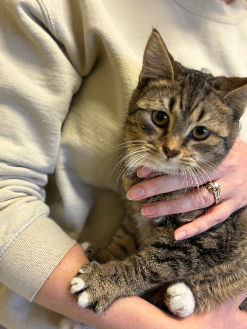 Meet Cuddles, the utterly adorable tabby cat with a name that perfectly describes her loving personality. This sweet feline is a professional snuggler and has a heart full of affection to share. Cuddles may take a day or two to warm up to new feline friends, but once she does, shes all about spreading love and harmony. Shes a true believer in the "the more, the merrier" philosophy when it comes to her fellow cats. If youre looking to expand your feline family, Cuddles is the ideal candidate to bring into your home. People are another story for Cuddles - she loves them from the get-go! Her friendly and sweet disposition makes her an instant hit with anyone lucky enough to cross her path. If youre seeking a feline companion whos always ready for a snuggle session or a loving purr, Cuddles fits the bill perfectly. Born around February 1st, 2023, Cuddles is in the prime of her kittenhood, ready to share countless cuddles and delightful moments with her forever family. And heres the important part: Cuddles is already litter box trained, so shes a breeze to care for in your home. If youre in search of a cuddly, friendly, and utterly charming feline companion, look no further than Cuddles. Shes eager to become a cherished member of your household, and with her warm heart and loving nature, shes bound to bring joy and happiness into your life every day. Dont miss the chance to make Cuddles a part of your family! Apply here (DOG): https://davincisdream.org/dog-adoption/ Apply here (CAT): https://davincisdream.org/cat-adoption/ We are based in Columbia, KY, and extend our services to other locations through our transport program. To ensure the safe and responsible transport of our animals, we currently only transport dogs to two specific destinations: Greenwood, IN, and Wilmington, OH. To be eligible for transport, dogs must meet specific criteria: 1. Approved Application: You will need to submit an adoption application for the animal and receive approval. Please also note that clicking the "Im Interested" button on PetFinder is not an application. To start the adoption process, you need to fill out an application on our website. 2. Deposit Paid: A deposit must be paid as part of the adoption process. 3. Transport Contract Signed: The potential adopter must sign a transport contract, indicating their commitment to meet the dog on the designated date. The Transport label next to each animals name signifies that this animal is available for transport, but please remember that this transport service is exclusively for dogs that meet the above criteria. This ensures the safety and well-being of the animals throughout the journey. For more information about our transport process, please visit our website here: https://davincisdream.org/transport/ FREQUENTLY ASKED QUESTIONS (FAQS) FOR OUR DOG LISTINGS Before reaching out to us, please take a moment to review these frequently asked questions. We strive to provide you with all the information you need right here. Please understand that due to the high volume of inquiries, we may not be able to respond to questions covered in this FAQ section. 1. Are your dogs potty trained? Unless the dogs bio specifically states that they are potty trained, you can assume they are not. Many of our rescue dogs come from challenging circumstances and may not have been exposed to housetraining. Housetraining is typically the responsibility of the adopter. 2. Do you transport to other locations? Currently, we only transport to Wilmington, Ohio, and Greenwood, Indiana. 3. Is this cat/dog still available? If the cat or dog is listed on Petfinder and does not have an "adoption pending" tag on the website, we are still accepting applications. However, please be aware that we often receive multiple applications for each animal. 4. How long does it take to hear back about my application? It can take up to 10 days to receive a response from us. If you do not hear back within this timeframe, please understand that we may have chosen not to move forward with your application. We are a volunteer-based organization and, while we read every application, we may not be able to respond to each one individually. Thank you for your interest in adopting one of our fur babies and for taking the time to review these FAQs. Your support and understanding of our processes are greatly appreciated as we work tirelessly to find loving homes for our rescue animals.