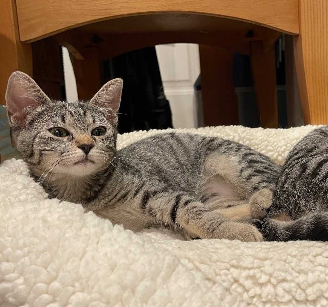 DOB:04/01/23 Mack is short for McKenzie and was renamed after being spayed when her foster mom found out she was in fact a girl and not a boy. Mack and her siblings (Chapo and Honey) were rescued at a young age from an unsafe industrial area. She has since come a long way and has become a more trusting and loving kitty. While she is reserved at first, she observes her siblings before engaging in activities. Mack loves napping next to her sister, Honey, and rubbing up on the older resident kitties for affection and friendship. One of her favorite past-times is playing hide and seek with the bedsheets. Macky is still learning how to be more confident and would do best in a home with a confident sibling to show her the world is not so scary, or to be adopted with her sister, Honey. Her foster mom is confident she will become a great confident kitty in no time. If you are interested in learning more about this kitty or in adopting her, please click here to email her foster parent.If you are unable to send an email to the foster parent through the link included above, please contact us and let us know what kitty youre interested in. You may also fill out our adoption questionnaire to speed up the screening process. Be sure to name the cat in the CAT PREFERENCE field at the beginning of the questionnaire. If the above links arent live, our contact form and questionnaire are available on our website at www.kittenrescue.org.For our fees and adoption policies and procedures, please click here.