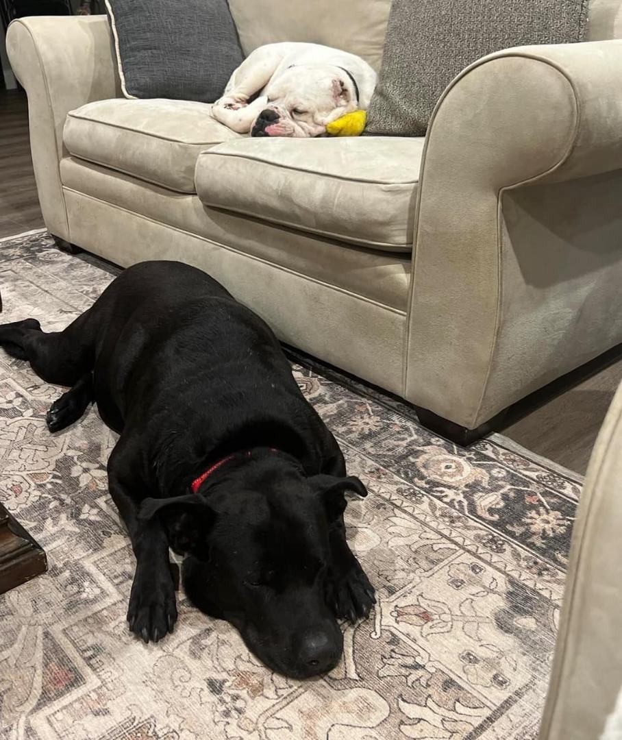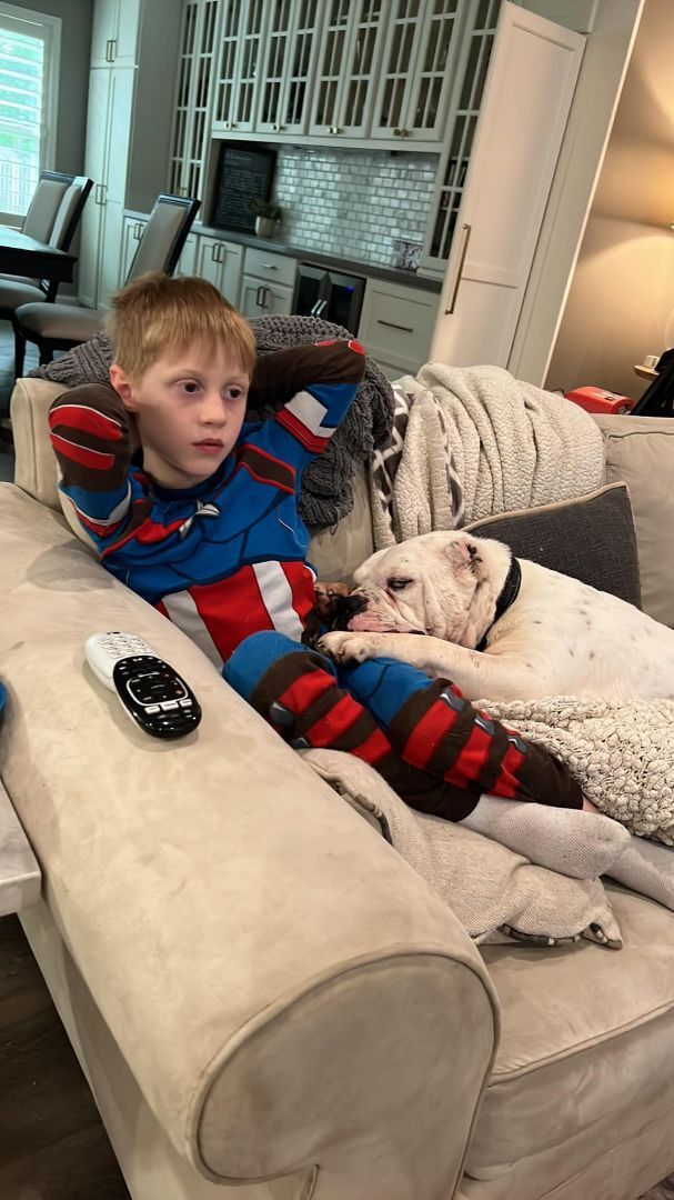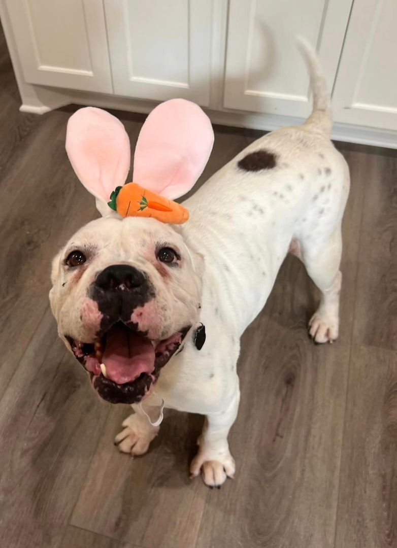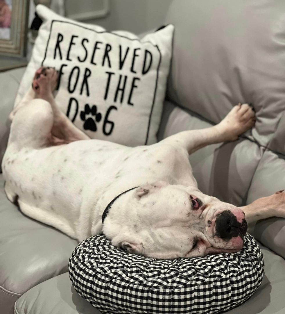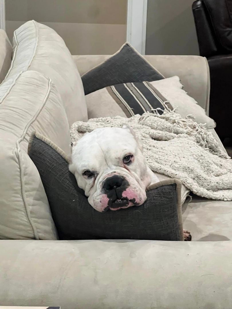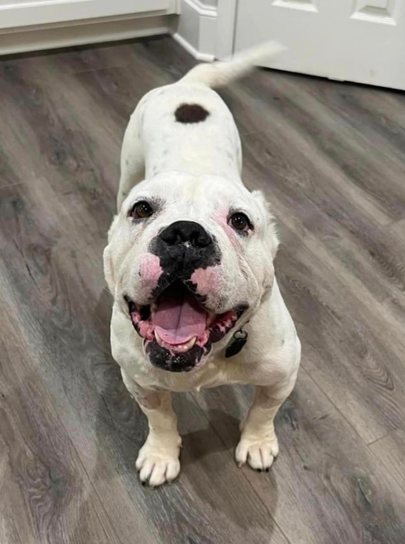 This happy wiggle butt is Miller. He is an English bulldog mix that is around 8 years old. He is short and stocky boy that weighs 58 lbs. He doesn’t really play with other dogs so he could easily be an only dog. He is good with other dogs, better with females and has been around puppies with no problem. He is perfect in his kennel and sleeps in there at night but he is on his fosters couch where he is passed out 90% of the time. He is also in a home with young kids and is wonderful with them. Cuddled up with his 6 year old human while he watches cartoons is something he is a huge fan of. If you are on the couch, he is happy to lounge with you. He is very low energy due to his age and breed. Miller would fit in well with most situations and is a very easy dog. He has not been cat tested and he is a bully with male dogs so a home with cats or male dogs will not be considered. He is neutered, vaccinated, microchipped and current on heartworm/flea/tick prevention. To apply to be followed around by this short stack: https://form.jotform.com/CLMR/TXAdoptApp