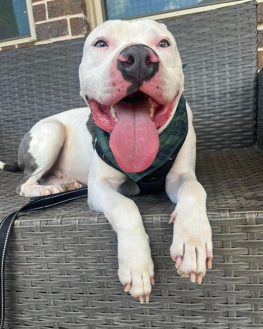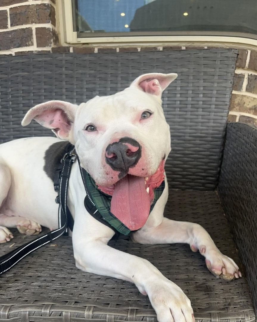 Meet the one and only Big Boy Scout! ? Scout is a male two-year-old pit mix. Scout was found by a sweet samaritan who changed his life forever. He was found roaming the streets dodging traffic and was sunburnt from being on the streets so long…. He never got to witness his first pup cup, hug, or even a human touch. He is a sweet soul who is learning how to be a dog every day. He sleeps all day and loves watching sports and eating pizza with his foster dad. He is a big couch potato. He will not say no to Netflix and snacks! He is a great listener and has made such great progress. He is a great listener! He is very gentle when giving treats. Scout is looking for someone who will have patience with him and keep working with him on his training. He is food-motivated and will learn any trick for a treat! He is currently working on leash training and not to pull. He is house-trained, crate-trained, and potty-trained. He loves being in his crate and doesnt mind being in it. You wont wear a peep from him. All he asks is for you to play a good show. Things that scare him: the leaf blower, and hairdryer. People blowing in his face. He is very sensitive around his ears and doesnt like them to be pulled or touched. He gets scared of men with hats on, but once the hat is off and can see the face he is fine. Special requirements for Scout- he needs a fenced-in backyard. He is dog-selective and shows alpha traits. He would do best in a home with females that have a calm temperament or as the only dog. He does fine with cats, he is more interested in how big your couch is to sleep on than playing with the cats. Scout would do best in a home with older kids. Scout currently is staying with a foster in a townhome, he isn’t a hyperactive dog that needs a big backyard just a little area to go to the bathroom and sunbathe. He is living with a 13-year-old female dog and does great with her. Scout is neutered and fully vaccinated. He will come with a rabies Tag and microchip. He is HW negative. He will get a health Certificate before traveling.All of our Dogs get multiple rounds of dewormer and are on flea tick and heartworm prevention while in our care. His adoption fee is $250 and his transport fee is $185. Click the link for Big Boy Scout! Big boys need love too!? https://form.jotform.com/CLMR/oos-adoption-application
