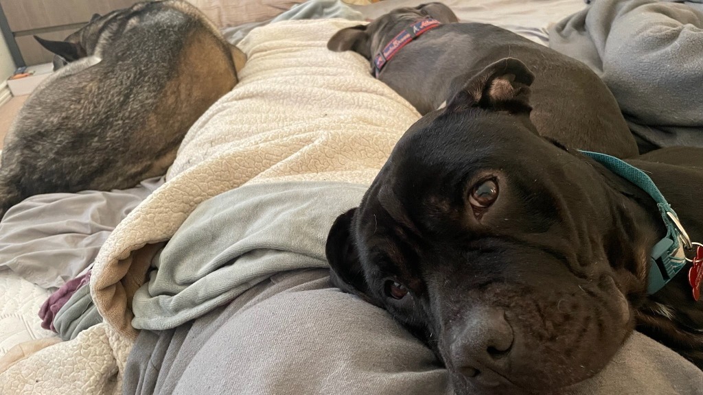 Jaspers foster family has this to say about him: "He is the best dog; hes such a love bug. He loves humans of all kinds. He knows basic commands - sit, stay, lay, place, and "in" for his crate. Its rare he goes in the crate since hes the best dog ever! Hes great on a leash and wants to meet every dog within reach. Hes a whole body wag kind of pup. His favorite thing is lying in bed with his human and his second favorite thing is lying on the couch with his human." Jasper is one happy 66 lb. hunky doggie. Around 4.5 yrs. old, Jasper is just a fantastic pup. Hes a great mix of gentle, calm, confident, silly/goofy, sensitive, and smart, and he loves to please. While he loves his walks, he also loves to balance that out with many cuddles! Who are Jaspers ideal companions? Hes good with other dogs and shares toys and treats with his foster dog siblings. Jasper has lived with cats, and, on occasion, he has chased them. Since hes a big boy, Jasper would do best with older, respectful kids who understand how to engage with a dog of his size. As Jaspers foster family says, "He is the best dog." If youre ready to meet Jasper, cuddle with him, and let him charm you just like hes charmed us, please fill out an application today!