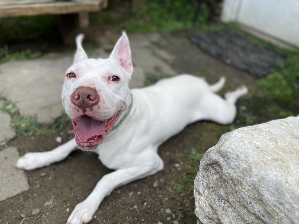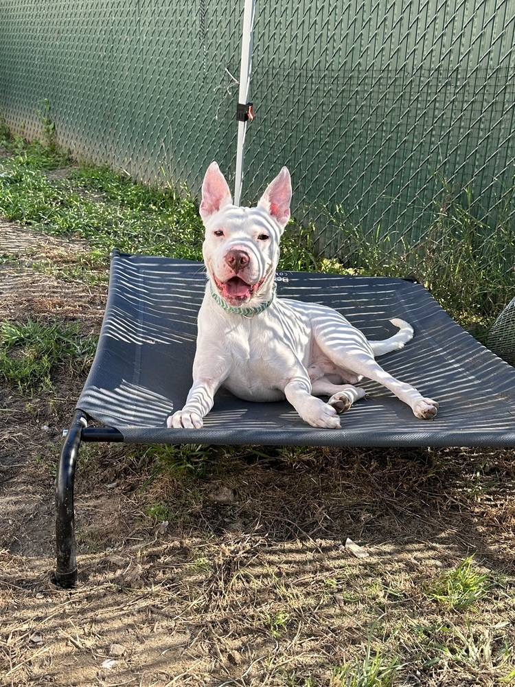 *Name: Zeus *Age: 1.5 years old *Current Weight: 50 pounds *Adoption fee: $375 Zeus is a one-year-old white staffy mix who is full of energy and loves to play. Despite being deaf, he is a very smart and attentive dog who is eager to please his humans. Zeus has a friendly and affectionate personality and loves to cuddle up with his favorite people. He also loves to play and would do well in an active home with plenty of opportunities for exercise and outdoor activities. He is very playful and enjoys chasing toys and playing fetch. As a deaf dog, Zeus requires some special considerations in his care. He is a quick learner and responds well to visual cues and hand signals. He would do best in a home with experienced dog owners who are familiar with working with deaf dogs and who can provide him with the love, patience, and training he needs. Despite his hearing impairment, Zeus is a social and outgoing dog who loves to meet new people and make new friends. He is great with other dogs and would be a great companion for another dog who loves to play and have fun. Zeus is a wonderful and loving dog who deserves a forever home where he can receive the care and attention he needs to thrive. If you are looking for a loyal and playful companion who will brighten up your life, Zeus might just be the perfect fit for you. PLEASE CLICK HERE FOR FAQs