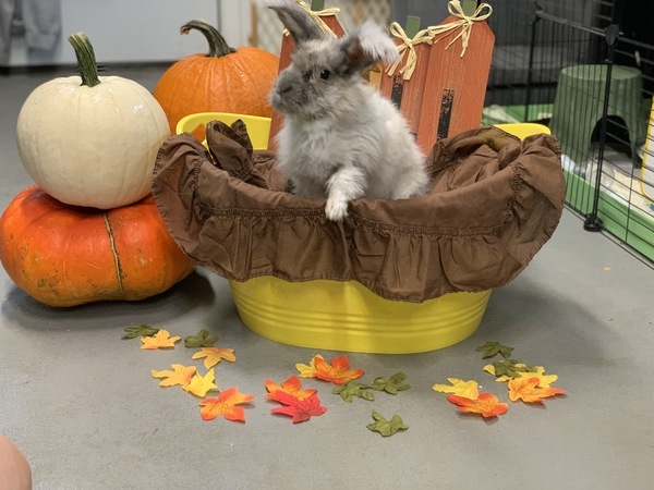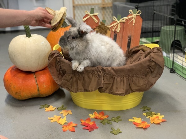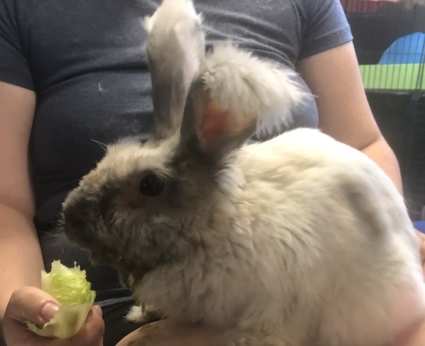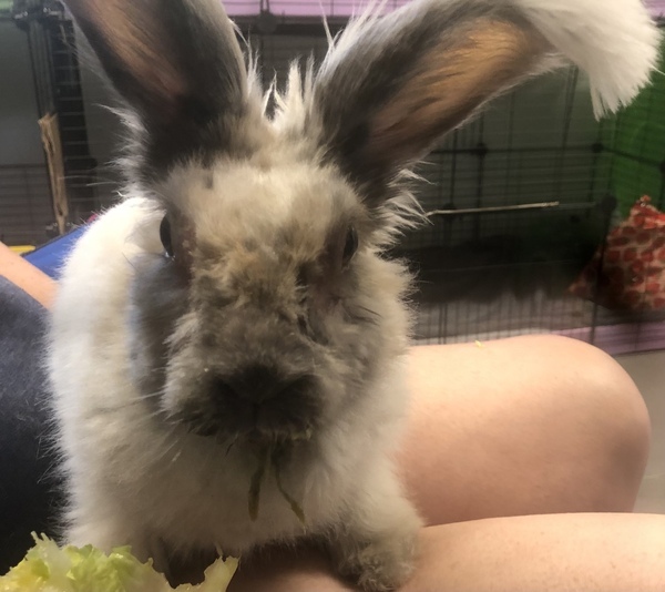 Mortimer (aka Mort) is an Angora rabbit looking for his forever home! Mort came to RBARI in terrible condition after being neglected for a long time. Angora rabbits are known and loved for their long and beautiful hair. However, this hair needs some extra care and it was clear to us that Mort never received the necessary love or care. He was matted down to the skin and once shaved his painful skin infections were visible. He is recovering well and his hair is starting to grow back as the softest and cutest little fluff ever!! Mort holds no grudge against humans. He loves to be held and hand fed. Please apply for this boy to give him the life he deserves! Primary Color: Pointed White/Himi Secondary Color: Lilac Smoke Age: 3yrs 5mths 2wks Animal has been Neutered