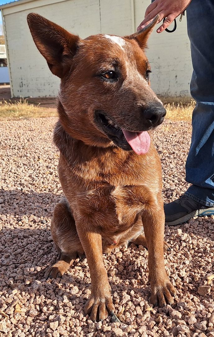Howdy Partner! Cowboys the name. I heard you were lookin for a handsome, playful, and an affectionate pup? Well, look no further because.. youre lookin at him. My sweet face wont be the only thing that melts your heart, but all the lovins I got to offer. I cant deny it, I also love receiving affection too. I love the butt rubs, the ear scratches, and definitely the belly rubs. I cant forget the best type of affection.. Treats!! I also love to play. I have a high energy playstyle and I get along with dogs my size. Some other dogs may not be able to play with me because I can be a bit much and dominate, but if they are tolerant, respectable, and playful we should get along fine. As for small dogs and cats. No sir. I dont get along with them. They usually cant keep up with how I like to play. Ive also been learning basic commands and some leash manners since ive been here. So, what I am trying to say with all of this is.. I am trying my best to learn new things to be your furever partner. Mosey on down to the shelter and ask to see me.