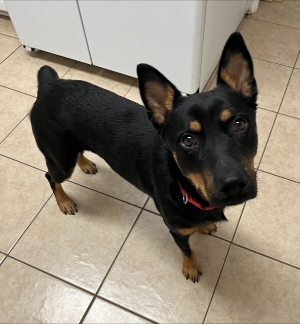 Name: Beamer Breed: Australian Kelpie mix Approximate Age: 1.5 yrs Approximate Weight: 44 lbs Sex: Male Im a happy happy boy who loves everyone I meet! I am full of energy and love to explore the great outdoors. I enjoy romping around the yard with my K9 friends. Im looking for a family that will take me on lots of adventures and give me all the love I deserve! Compatibility: Dogs: Yes Cats: Unknown Kids: Has been good with 12+, has not been exposed to younger The Basics: House broken: Yes Crate trained: Yes If you are interested in Beamer, please email adoptions@rufftalesrescue.org