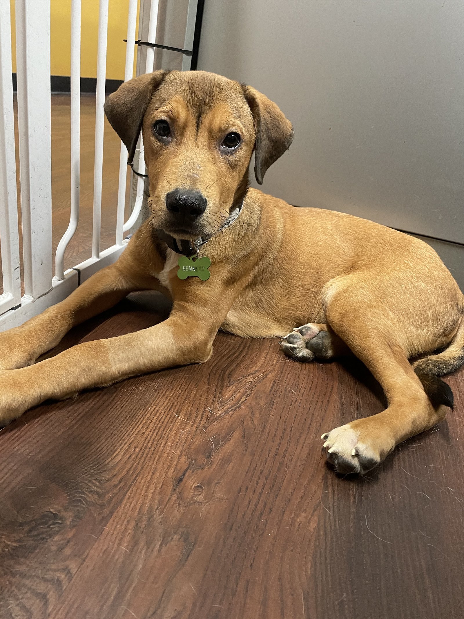 Bennett is thriving in his foster home. At 5 months old and a squishy 25 pounds, hes the epitome of the perfect pup. He loves to explore, play with his toys and his fur siblings(house mates). Hes a snuggle enthusiast and loves to nap with his foster fur siblings. Bennett is a professional at giving the sweetest kisses and sleeps through the night like a champ in his kennel. Everyday he learns something new. He is walks good on a leash, housebroken, and is crate trained. He loves going to new places and meeting new people. Bennett is great with other dogs, cats, and is good with kids. He would make a great addition to your family! Bennett is ready for adoption. He is completely vetted. Vetting includes spaying/neutering, microchip, rabies as well as all puppy vaccinations, and has been on preventatives. If you have any questions, please email us at: newbeginnings_animalrescue@yahoo.com You can apply to adopt Bennett here: www.newbeginningsanimalrescue.net THANK YOU FOR CONSIDERING ADOPTING A RESCUED PET!