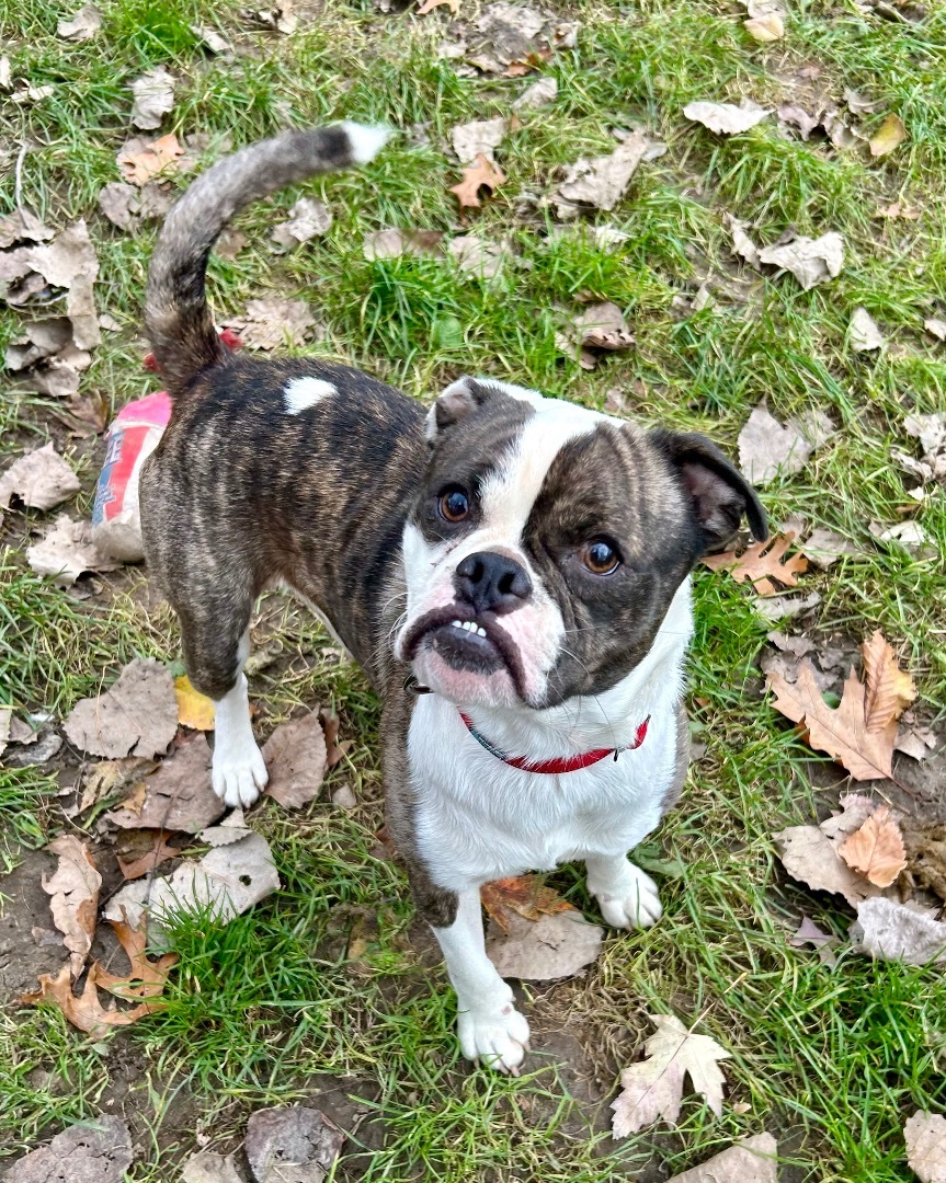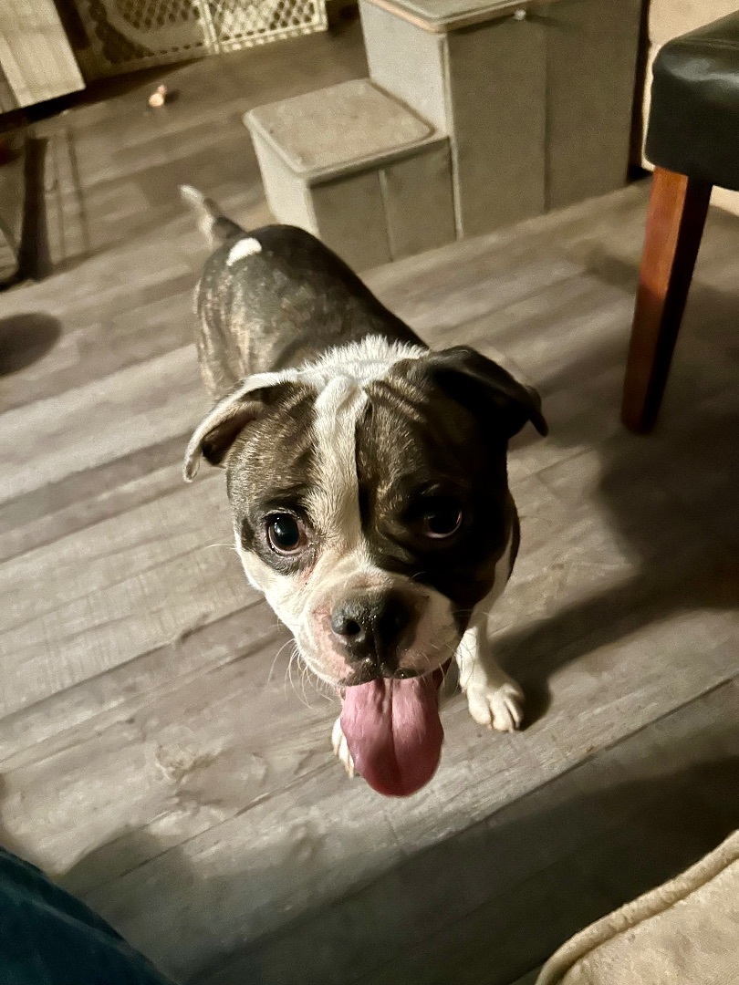 Meet Earnest! Earnest is around 2 years old and is possibly a Boston terrier/ bulldog mix. He is under 30 lbs. Earnest loves to play ball. He constantly has a tennis ball wanting someone to throw it for him. He would rather play ball with his human than play with the other dogs. Earnest is neutered,microchipped, and up to date on shots. Earnest is just adorable and loves everyone. If interested in Earnest please do an online application.
