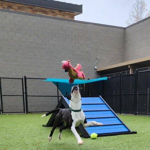 Hercules is SUCH a catch! Despite his young age, he is a fun and gentle boy. One of his favorite things to do is play fetch! He gracefully bounces after the ball and returns, ready for you to throw the next ball. Once hes done with fetch, his next favorite thing to do is to soak up the sun while sitting in your lap. Hercules is an affectionate guy. He will swing his behind around for scritchies and sometimes even do a little dance! Please dont tell him that hes not a lap dog, because it may break his heart. Our fun, sweet, bouncy boy is very treat motivated. While he uses his whole mouth to get the treat, he is still very gentle. He already knows sit and is eager to learn more! Our goofy guy is a young boy whos adjusting to scary things in the world, such as a loud knock on a door or car whooshing by. He walks beautifully on leash, but will dart if a car drives by quickly and startles him. There are times where he gets scared meeting new people and may hide behind his hooman, but hes quickly won over by soft voices and treats. Hercules is truly a special dog. Hes quickly become a volunteer favorite and deserves a safe, loving, patient home to help him open up and become more confident. We think Hercules will make a phenomenal family dog who will provide endless love and entertainment with that snaggletooth grin of his. Hercules is currently being fostered by Almost Home Boarding and Grooming Facility and is available for adoption. He can be adopted directly from the facility after an approved application from GCAS has been submitted to us and youve met Hercules in person. If youd like to meet Hercules, please contact their facility to set up a time! Phone: 336-644-7777 Email: office@AlmostHome-Kennels.com Business Hours: Monday-Friday 7:00 am - 6:00 pm Saturday 8:00 am - 12:00 pm Sunday 4:00 pm - 6:00 pm Address: 7903 Cramer Ct, Greensboro, NC 27455