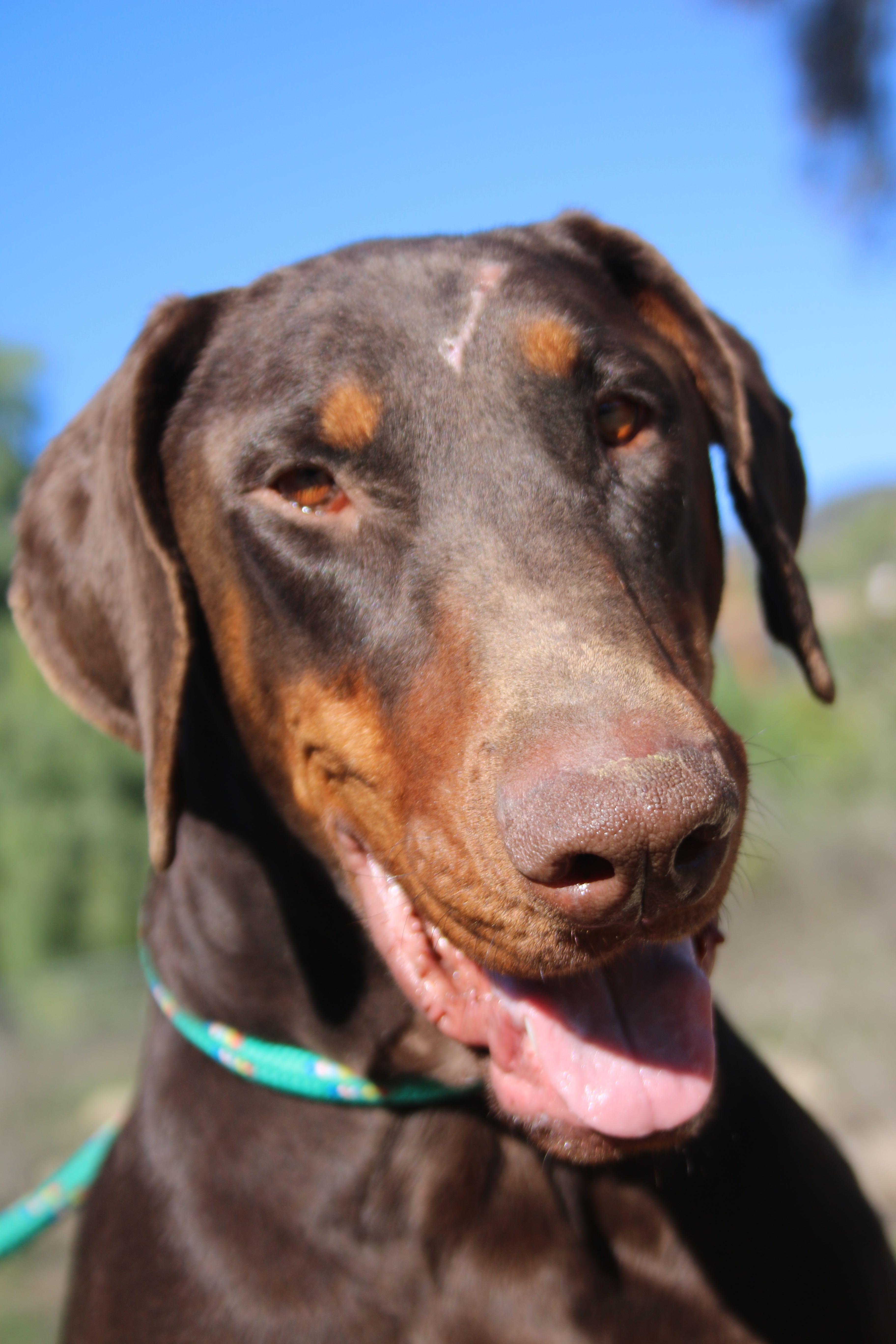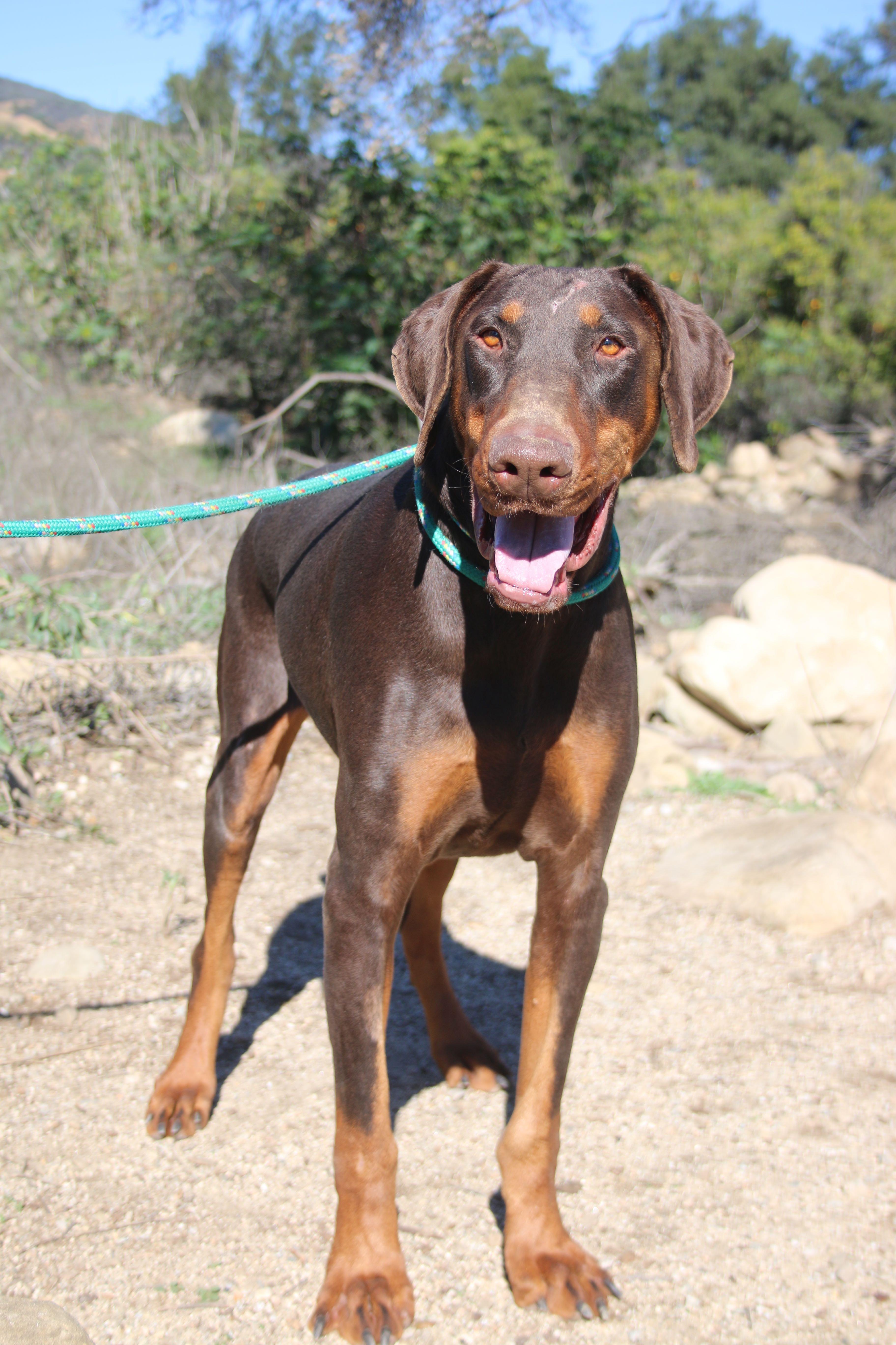 Marty is an endearing but STRONG Dobie boy who came to us from an upstate shelter. Fortunately, hes apparently very dog-social, as he let himself out of a crate and a fenced area in order to run with other dogs having that privilege. He is currently bunking with another male Dobie, who seems slightly overwhelmed by Martys energy level. He did come directly to us when called, so he would likely be a good candidate for dog parks and dog beaches, and this would help to expend some of his energy. An adult home or at least one with teenage kids would be best, at least until Marty has enough training not to overwhelm smaller fry. He appears to know basic commands like "sit" and "come." His animal shelter aged him at 5 years, but to our experienced eye he appears to be more like 3. When impounded at his shelter he had several wounds, one of which required shaving and suturing, on his forehead. We dont expect this to be permanently scarred, though it may always be noticeable.