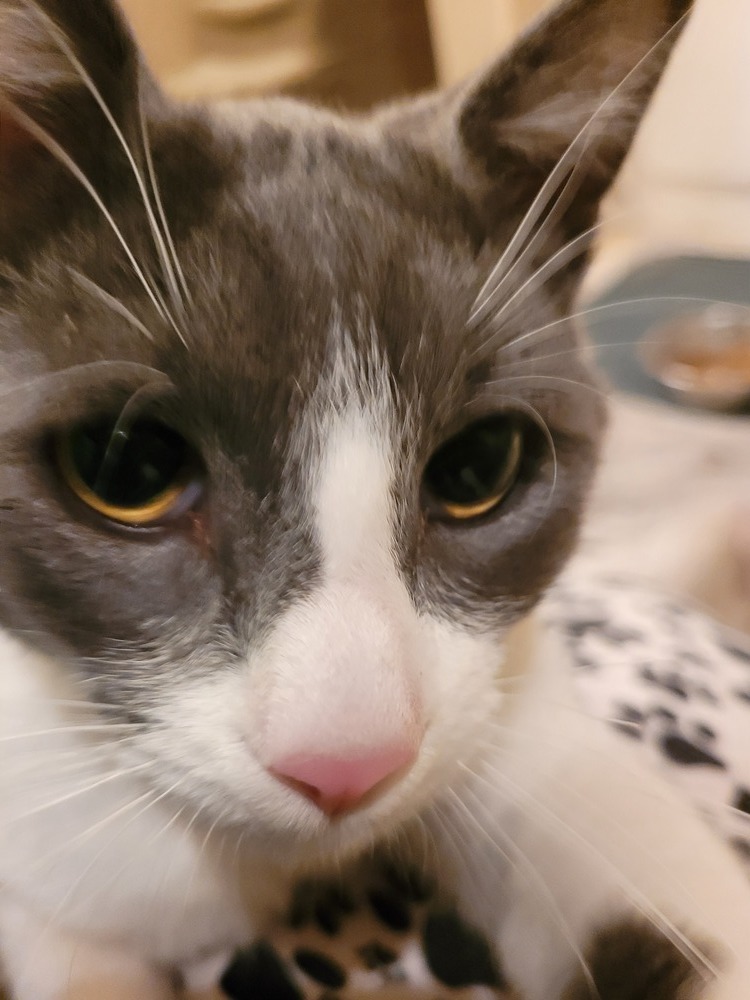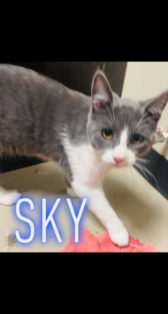 Sky is a super friendly guy looking to hang out with his people. He loves to be in your face but not necessarily needing to be held. He can purr like no other when he is content. Please choose him to be your family pet. Apply to foster or adopt at www.fetchingfureverhomes.org