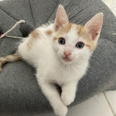 Meet Pacey, the charming orange and white male kitten whos ready to set your heart racing with his cuteness and charisma! With his vibrant white fur and pristine orange accents, Pacey is a little ball of sunshine that brightens even the cloudiest days. Life with Pacey is a perpetual adventure, filled with boundless energy and endless curiosity. Hes a natural-born explorer, turning every corner of your home into a thrilling playground. Whether hes chasing a feathered toy or practicing his stealthy stalking skills on a toy mouse, hell keep you entertained with his playful antics. But its not just his playful spirit that makes Pacey irresistible. Hes a cuddle aficionado, and when the excitement of the day is done, hell curl up beside you, purring up a storm. Pacey is more than just a kitten; hes a little heartthrob, stealing hearts left and right with his adorable charm. If youre looking for a furry friend to bring joy, laughter, and endless affection into your life, Pacey is the kitten who will make every day an adventure filled with love.