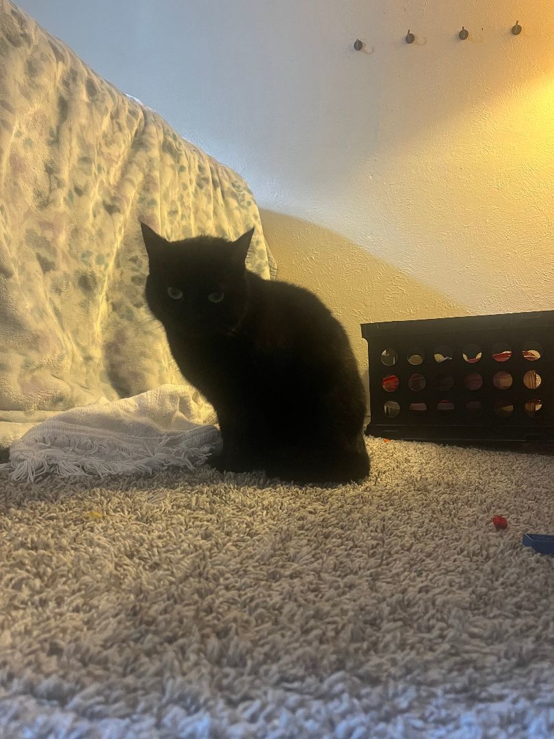 Binx is a beautiful black cat. Binx is pretty shy and enjoys just watching everything from a far. Binx loves to be cuddled and can not wait to be in his forever family!