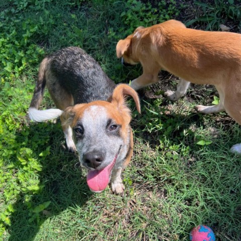 Introducing Cowboy: Your Playful Adventure Buddy! Howdy there, future fur-parents! Meet Cowboy, the spirited foster pup whos ready to liven up your world with endless joy and sweet puppy loving. This rambunctious rascal is all about embracing the great outdoors. Whether hes playing with his sister in the yard, making new friends at the dog park, or sprinting across an open field with a ball in his mouth and tail wagging, his zest for life is contagious. With a heart full of playfulness and an adventurous spirit, hes the ultimate companion for outdoor escapades. But dont let his playful antics fool you- when the playtime dust settles, hes also a pro at snuggling up and melting into your lap, making him the ultimate cuddle companion after a day of adventures. Lift him into your arms, and hell nestle against your shoulder like a little baby. This adorable boy gets along great with other dogs, so if you have a four-legged friend already, Cowboy is sure to be the life of the party. Hes been working on his manners too, eager to impress with his ever improving leash skills and basic commands. Hes a quick learner, eager to please, and ready to join a family thats willing to continue guiding him on his journey to becoming a well-mannered adult dog. If youre searching for a faithful companion to share lifes adventures - from lazy Sunday afternoons to exciting escapades - Cowboy is the pup for you!