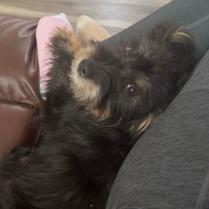 Kobe is an 8mo Schnorkie that weighs around 20 lbs. He is a fun loving party animal. He loves to play. He is very active. Playing fetch is a must and sometimes he thinks its funny not to bring it back so you will chase him. He likes to play wrestle too! Toys are fun. Enjoys chewing bully sticks. He loves to give kisses and be loved on. He is very athletic jumps straight up onto high beds for cuddles and sleepy time. Requires a fenced in yard. May be too playful for smaller children(under5). Not a good match for elderly. He needs a home with children/teens and parents that want a silly fun playful dog. He is crate trained. He is about 90% housebroke. He does calm down for couch cuddles. We think he may do best with another dog his size as a play buddy. *special note* He does require anti nausea meds before car rides.