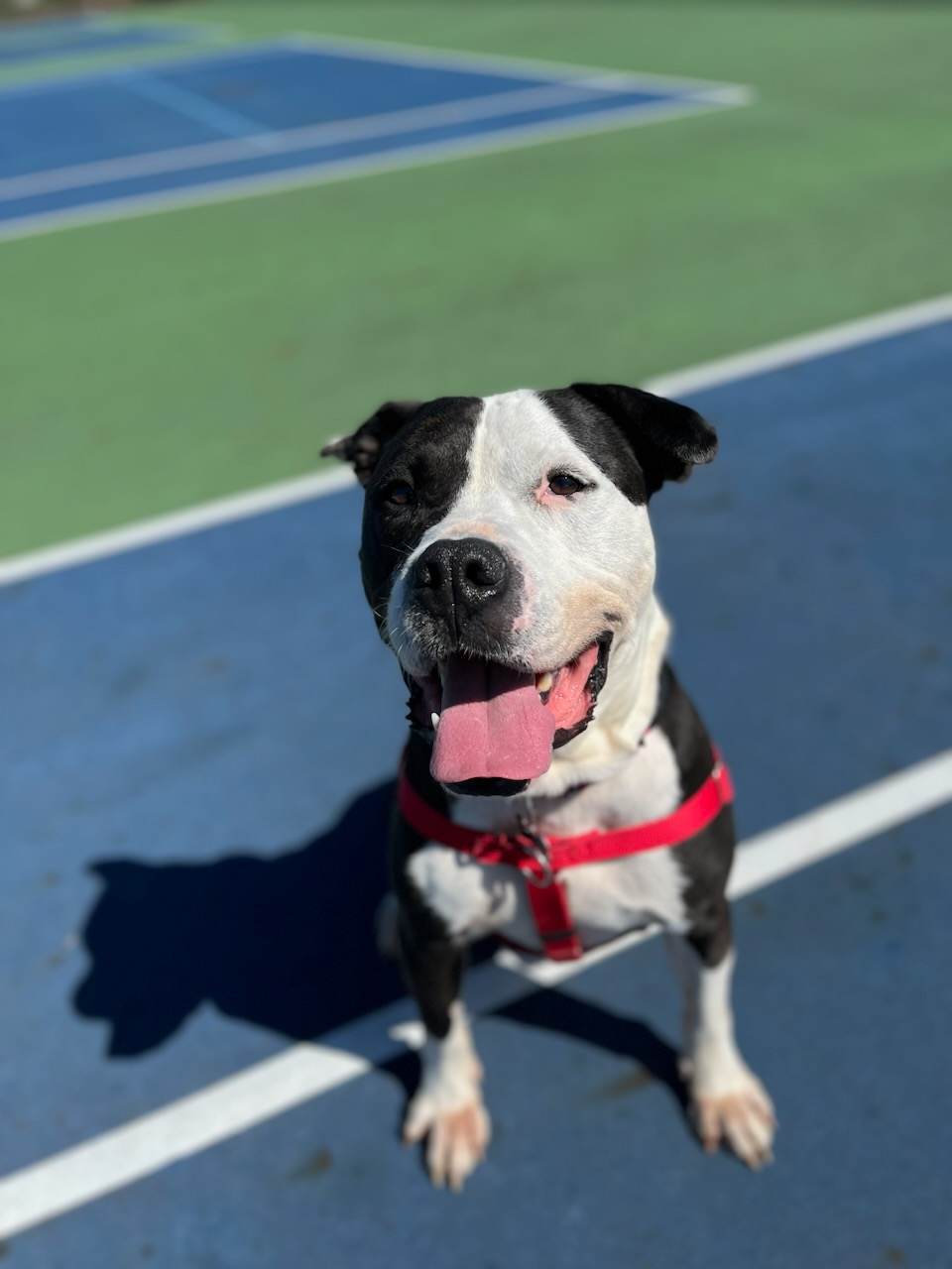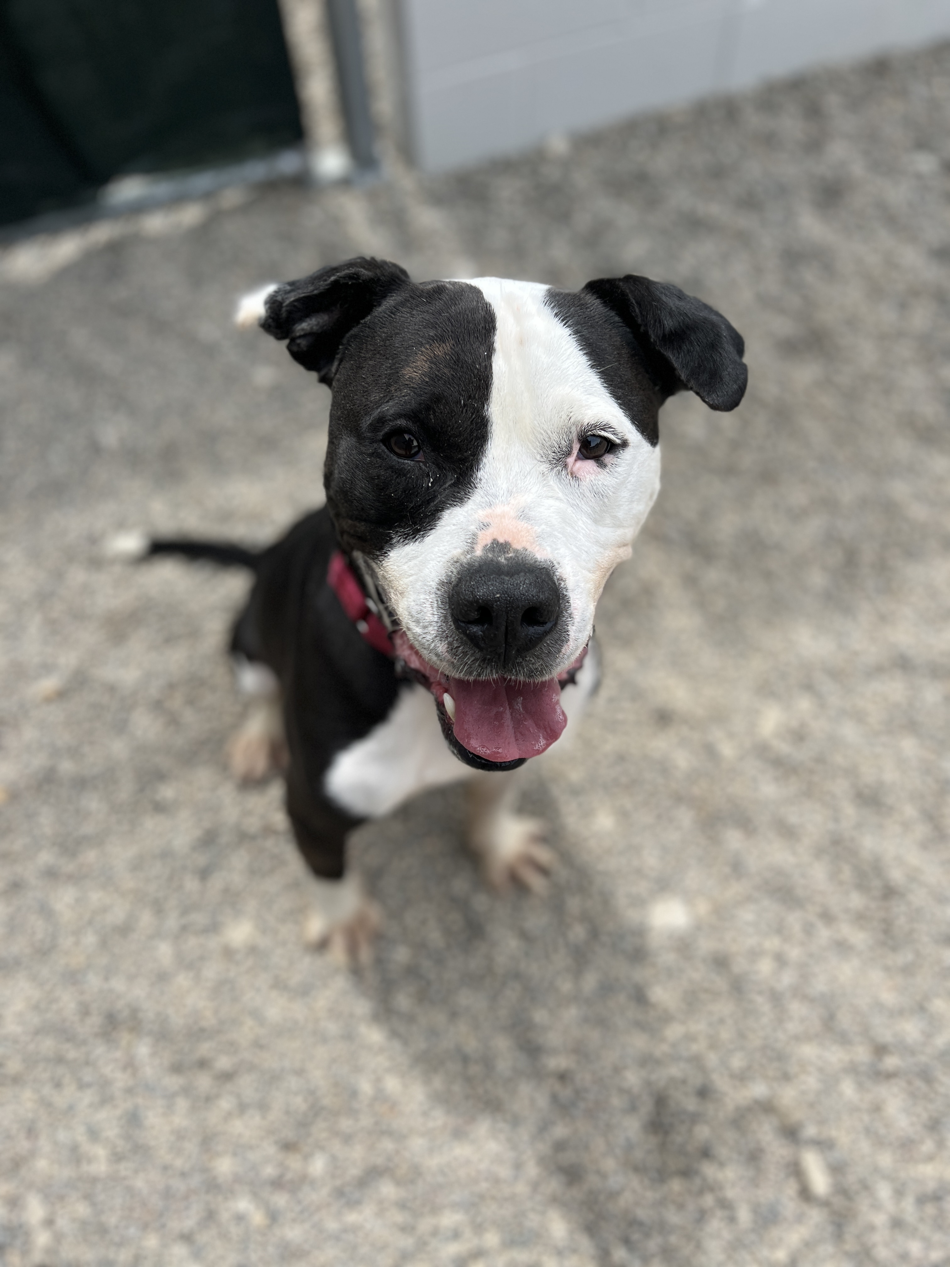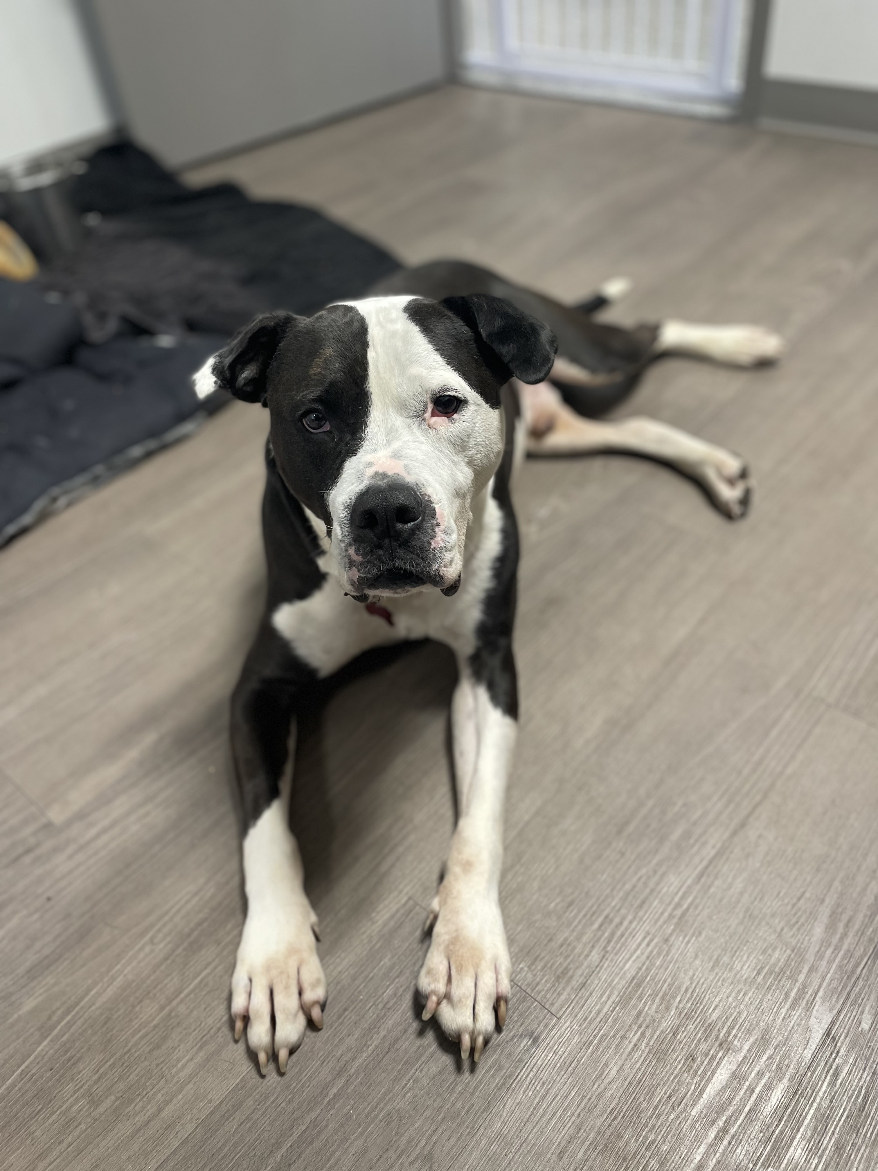 Estimated DOB: ~2015 Breed: Pit mix Gender: Male Size: Large, ~75lbs Dog Friendly: Yes, prefers calmer dogs. Cat Friendly: No Kid Friendly: Older only (12+) Activity Level: Medium Foster home needed! *SPONSORED ADOPTION FEE!!!*