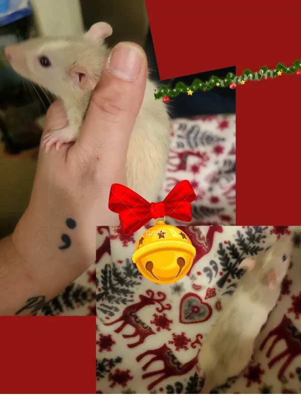 Fostered in Shirley, MA. UPDATE 12/12/23: “ALL babies have been handled since they were a day old. They are the sweetest! They are friendly, curious and playful. Love being handled, come over to human interaction. Love being pet, snuggled and giving kisses / grooming anyone who gives them attention. And they love attention! They are a little hesitant to be scooped up at first as most rats tend to be but if you sit at their cage with the doors open and rest your arms near the door they will climb on you and sit on your shoulder, cuddle your neck or dive into your shirt to snuggle brux and boggle. They are 100% ok being picked right up but will scurry at first. I tend to pick them up for a min or two and love on them, I then hold them to the cage door to run back if they want to so they don’t feel trapped. That tends to make them want to be held more as they know they can go anytime. I’ve been making sure to have plenty of cuddle sessions with all of them. They enjoy hiding in my shirt and cuddling on my shoulders, neck or chest. They are extremely playful, curious and silly. They love to wrestle with eachother and with our hands. We wiggle our fingers or gently tap them and they will wrestle while we tickle their belly or backs. They run around and climb on everything, enjoy running in and out of hides, tunnels and hammocks. They like climbing the bars of their cage, lava ledges and ropes. They are very active. They love their plastic igloo hide, baskets, space pods and especially their plastic pop accordion tunnel tube. They enjoy relaxing in hanging fleece hammocks and other hanging beds. They’ve enjoyed playing in water as we have a toy play sink that runs real water. They also enjoy card board boxes full of tissue and paper or empty to hide and play in. We free roam once a day in a playpen rodent gate (yes they do climb the side bars to try and get out) for an hour. I’ve also started roaming them in my bathroom as its safe and enclosed and baby proof. They are EXTREMELY treat motivated and love their treats. They enjoy all kinds of treats. Almonds and other nuts, baby food snacks like the puffs and cookies. Fruit and veggies which I give them at least 3x a week in variety. Crackers, chips, yogurt, yogis, cereal etc. They love food! Watermelon and natural whole almonds are a big favorite. They LOVE grooming us and giving us kisses. They will give lots of kisses when snuggling.”
