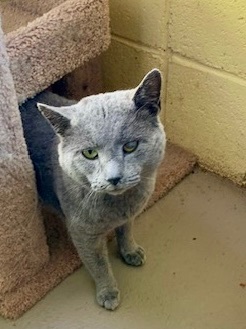 SECRET AGENT RANDY BEANS is a 3 to 4-year-old male Russian blue cat. He arrived at the shelter in early December and has not been reclaimed. He weighs 12 pounds and is a very sweet and handsome fellow. Scheduled to go out of state on a transport through AARF to one of their partner agencies which tested him, and found that he was FIV positive. As a result, he was not eligible to go on transport. All the positive test result really means is that his immune system is compromised. It does not mean that he is sick or that he will die from it. He can be in a house with other cats with no problem, and he can live a long, normal and healthy life. Just like with any other cat, if he did get sick, he would need to be seen by a veterinarian so he could be treated and any illness brought under control. Thanks to HART, a local cat rescue group that assists the shelter, RANDY, was neutered and received a rabies vaccine on Tuesday, December 19. As a result, he can go home the same day that he is adopted! Serious adopters are encouraged to CALL the shelter to schedule an adoption appointment. Staff can explain the adoption procedures and fees when you call. The shelter does require EXACT change in the form of cash or a check. The shelter is UNABLE to accept credit or debit. So, please go prepared! That includes taking your own cat carrier with you to the adoption appointment in case you do decide to adopt RANDY or one of the other spayed or neutered cats. No animal should be allowed to run freely in any vehicle. Especially an animal that you have just adopted! Safety first!