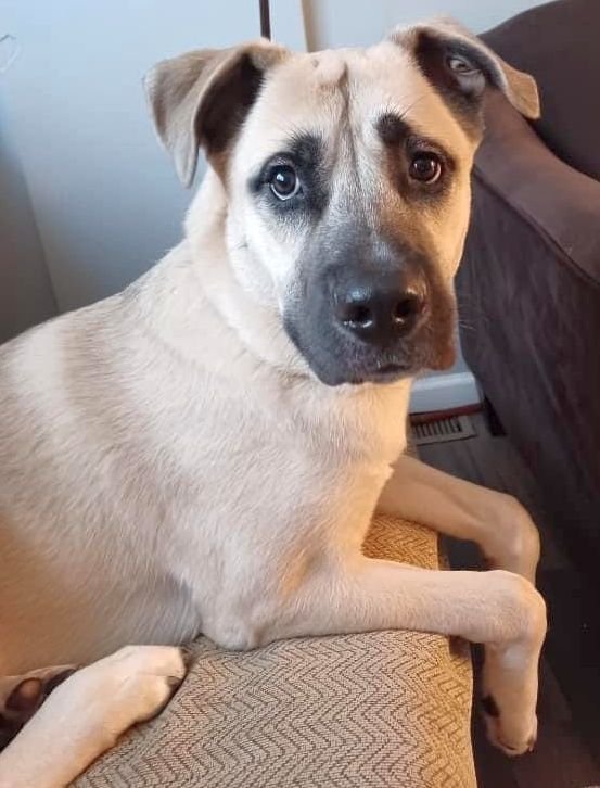 Cane is a young Shepherd/Boxer mix boy who loves to play ball and loves to run. He has lots of energy and the softest fur! He was born on 4/4/2023 and weighs 50-60 lbs. Cane loves hugs and kisses...and to dance with you if allowed! He has such a sweet personality. Cane is good with all size kids but because hes a big boy, he needs to be careful with little ones. His original owners had a 2-year-old and 6-year-old and teenagers who Cane loved but due to the youngest childs asthma issues, the family cannot keep him. A family friend is helping the family find a new safe and loving home for this big puppy. The family just took him to the vet to make sure he is up to date on all his vaccines, too! Although hes a big boy, Cane has puppy behaviors which means he has a lot of energy and loves to chew and run and be active. He is looking for a home with dog-savvy people who understand that puppies need training and room to run. Hes housebroken on wee wee pads at home. His original owner had him in an apartment in the Bronx so its all he learned. Canes current owners do take him out for bathroom breaks and are working on Canes housetraining. This boy is good on a leash and has been crated. He also is good with dogs and when met a friends cat, he did just fine. Please help Cane find a new home and a family to love. If you would like to be part of Canes new life, please contact Denise at 732-690-2934 or by email at dlaboy74@gmail.com - Cane is currently living in Metuchen, NJ.