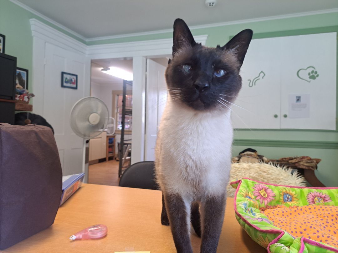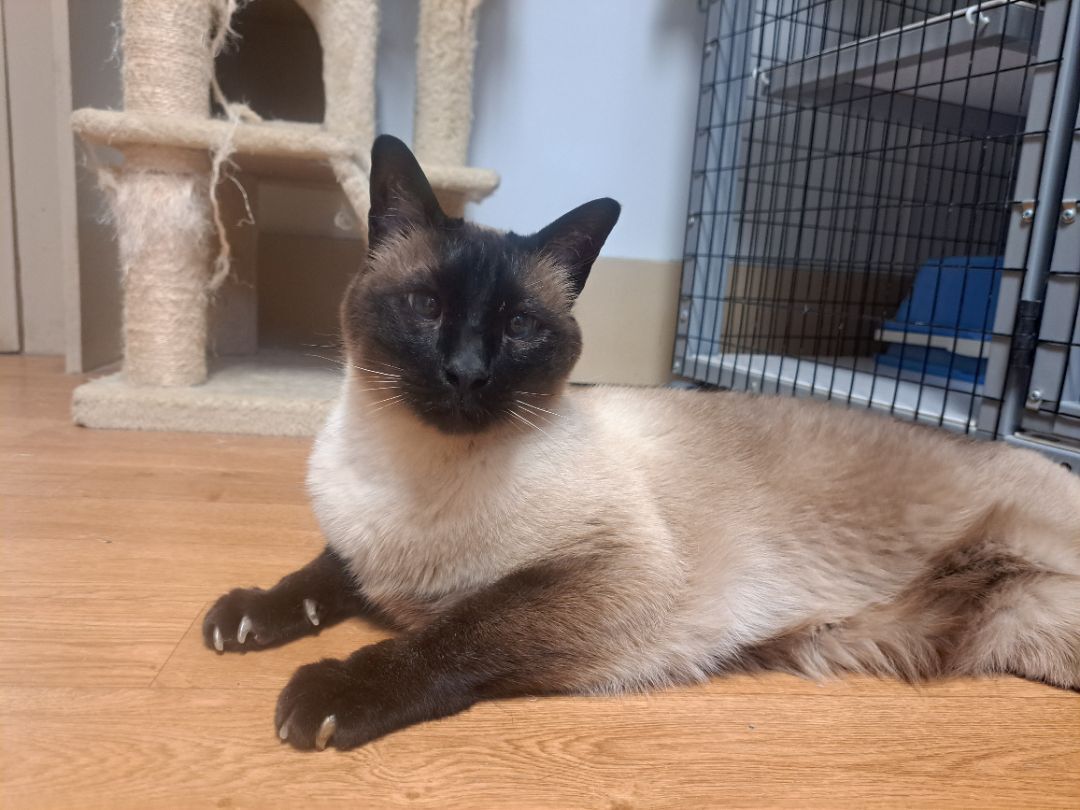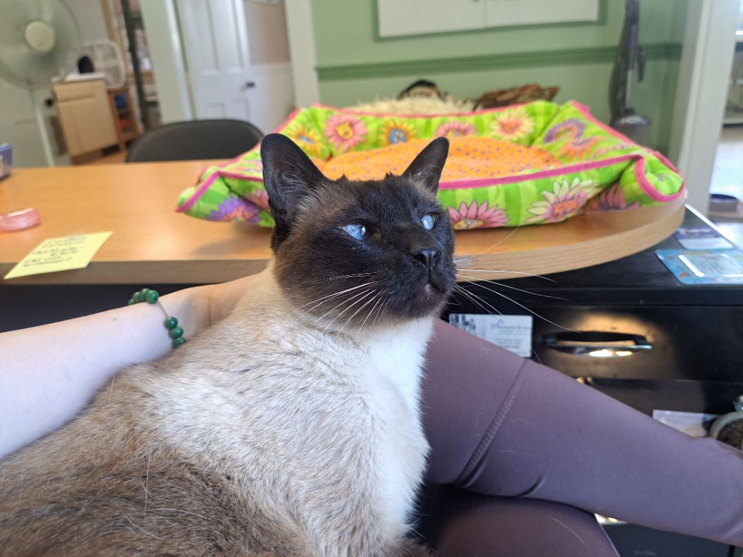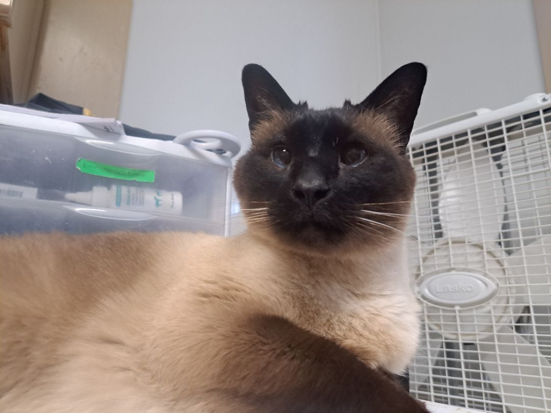 Senior boy Frankie is approximately 14 years old and is looking for his second chance at a forever home. His owners growing family and travel demands made it so they felt they couldnt give him the attention he deserved. Hes very vocal (he is a Siamese after all!) and loves to be around people. He loves to snuggle, be held, and sit on laps. Hes been lonely here at the shelter so were hoping to find him a home ASAP. Hes never lived with another cat but we were told that he was tolerant of a family-members dogs that came to visit, and he spends time around the Shelter Managers dogs without incident (FIV cannot spread to dogs). Hed probably prefer an older or more mellow dog to a rambunctious puppy. Frankie would make a great companion for someone! PLEASE READ: Frankie tested positive twice for FIV on our SNAP tests. Whether he actually has FIV or he was maybe just vaccinated against it years ago (which would make his test show up positive), we dont know, so to be safe we have to assume he has FIV. FIV is like HIV but for cats. An FIV+ cat can live a long, healthy life just like any other cat, and FIV is transmitted through violent fighting and biting. Because Frankie has never shared his home with another cat and growls when he sees them, he should probably be the only cat in the home just in case. There are a lot of resources to learn about FIV, and we can provide his adopter with a handout that has plenty of good info. We hope his FIV status wont keep this sweet boy from getting the home he deserves! Our adoption application can be found here: http://secondchancear.org/home/meet_our_cats All of our cats are spayed/neutered, up-to-date on age-appropriate vaccines, microchipped, de-wormed, tested for FeLV/FIV, and treated for fleas before adoption.