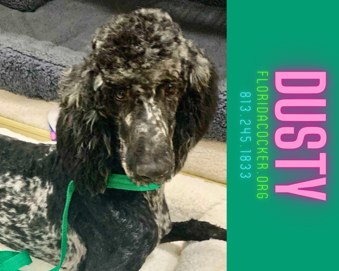 Handsome Dusty (DOB 10/29/2022) is a standard male poodle. He came from a breeder with Buffy, his litter mate. Dusty is sweet and a little shy. He likes people and gets along with other dogs. Dusty would prefer an at-home owner or another doggie playmate so he is not home alone all day. A fenced yard would be wonderful! If you are interested in adopting Dusty, please fill out an application at https://www.floridacocker.org/adoptions. For more information, please call 813-245-1833. Potential adopters must have a verifiable veterinary history and should be willing to travel to the Tampa area for adoption if approved. ONLY APPROVED APPLICANTS WILL BE CONTACTED. This post will be removed once is placed. Please share this post!