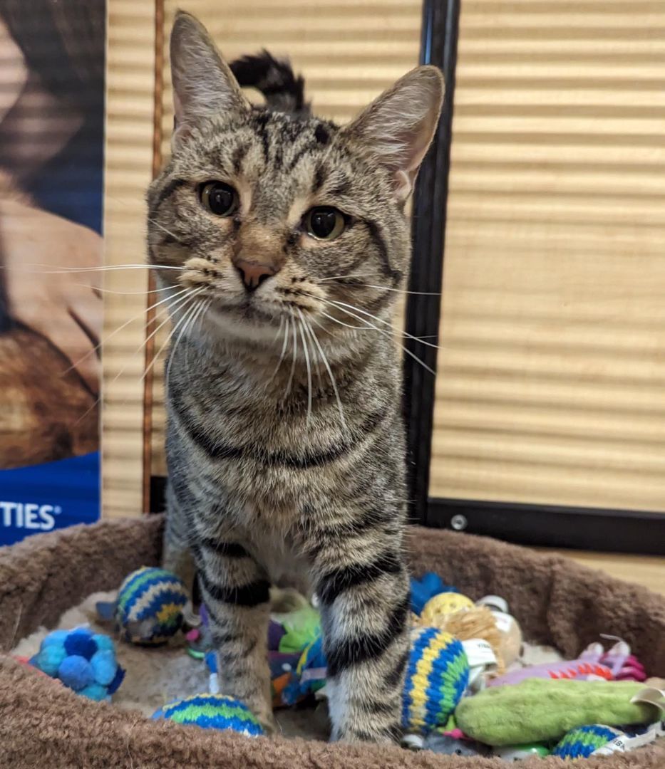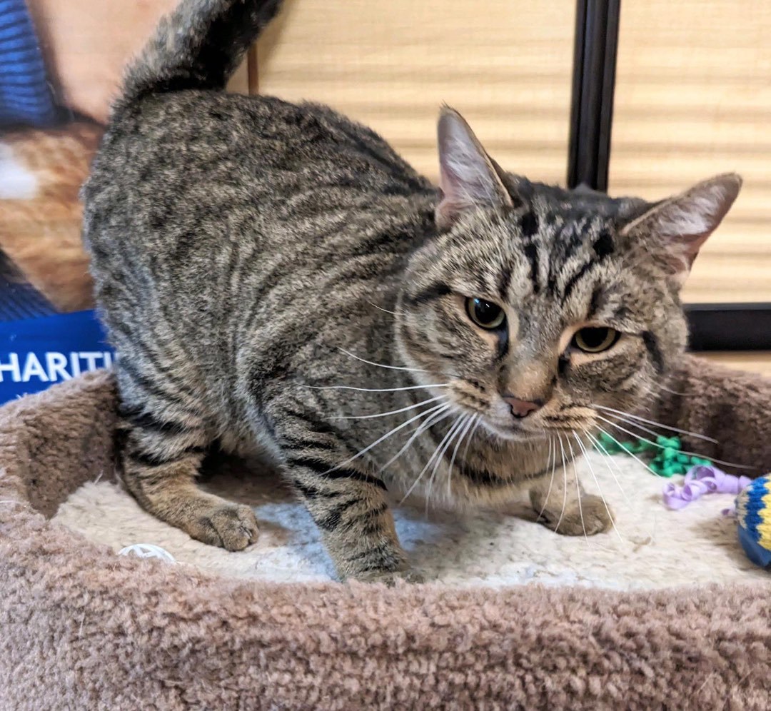 Hey, how’s it going? The name’s Bud, and it’s real nice to make your acquaintence. I’m a 1-2-year-old, M, grey tabby DSH cat currently available for adoption at Noblesville PetSmart. I was dumped at the Rescue, and it may take a minute or so for me to warm up to you, but once I do, you have a friend for life!¡ I really just want my very own forever family. I’m already neutered, current on all shots, have tested negative for FIV/FLV and my adoption fee is just $80, which includes access to Rescue Me RCHS with any/ all questions and/ or concerns. It may take me a little bit to adjust to being picked up, but please just give me time! Oh yeah, i’m good with other cats, dogs and kids. I’m waiting!!!