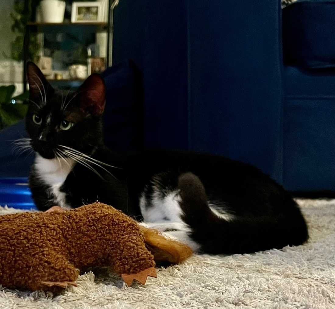 DOB:9/28/2020 Perry is a handsome, black and white tuxedo with a strong mustache and brow. He is a shy guy at first but once he feels comfortable is a love bug and cuddle monster. Once he is shown attention he never wants you to stop and will rub his body on your leg until you agree to more. He does not enjoy being picked up or held but would prefer to be your sidekick and lay next to you. Perry will love you forever if you pet him all day. His favorite toys are ones with feathers, the catnip banana, and chasing strands of yarn. Hes got a lot of love to give and is looking for someone to love him just as much. If you are interested in learning more about this kitty or in adopting him, please click here to email his foster parent.If you are unable to send an email to the foster parent through the link included above, please contact us and let us know what kitty youre interested in. You may also fill out our adoption questionnaire to speed up the screening process. Be sure to name the cat in the CAT PREFERENCE field at the beginning of the questionnaire. If the above links arent live, our contact form and questionnaire are available on our website at www.kittenrescue.org.For our fees and adoption policies and procedures, please click here.