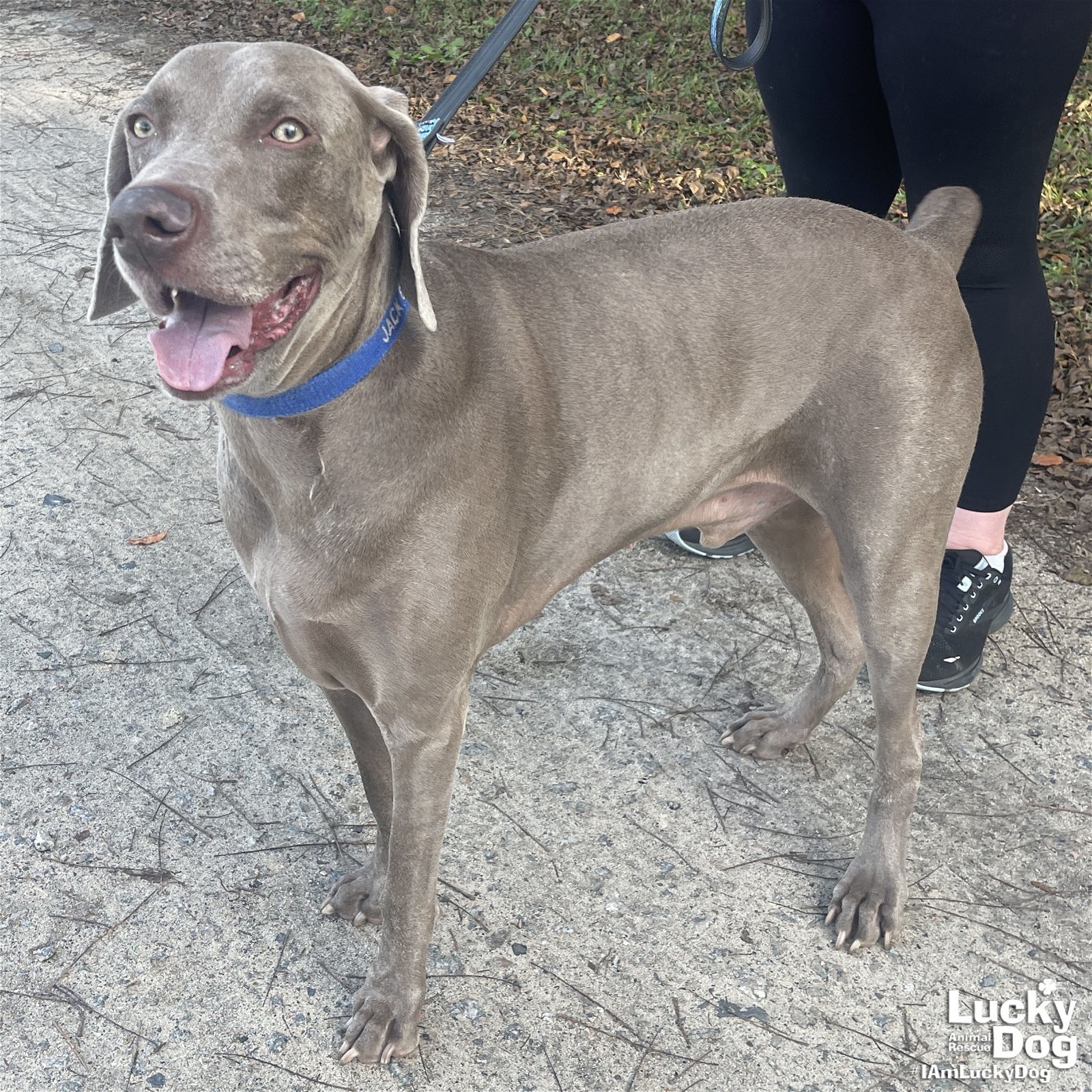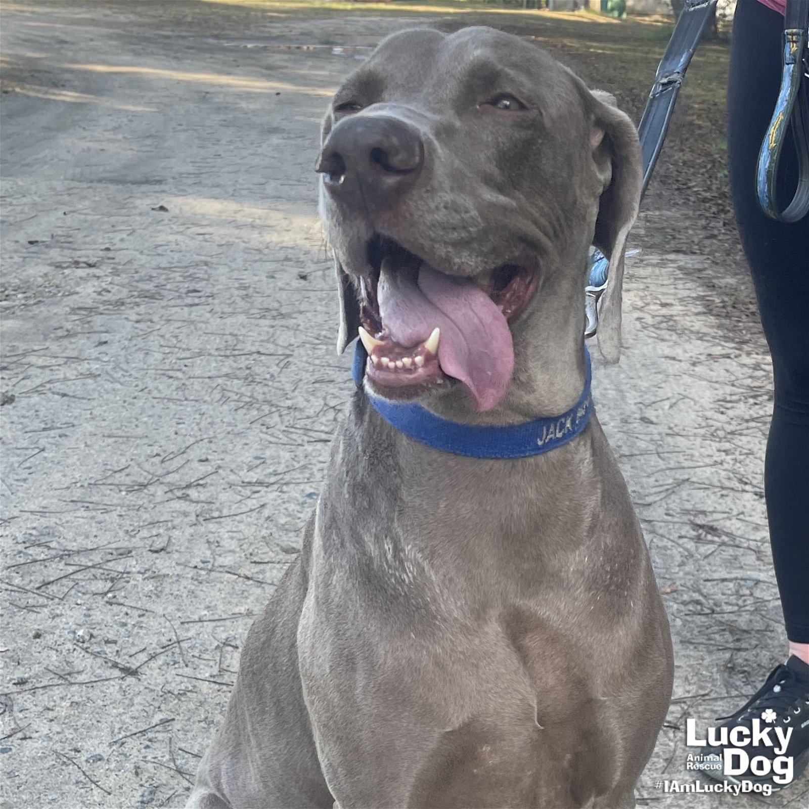 Please contact Maddy Karon (maddyk@luckydoganimalrescue.org) for more information about this pet.Handsome boy seeking fresh start! JACK FLASH NEEDS A FOSTER OR FOREVER HOME!!!! Name: Jack Flash Best Guess for Breed: Weimaraner Best Guess for Age: 4.5 years as of August 2023 SEX: Male Approximate Weight: 98 lbs Gets Along With: Other dogs! We havent seen him with cats but he can be tested. The shelter tested him with kids and he did well; however, to our knowledge he has not lived with them. Currently Living at: South Carolina shelter; needs a foster or forever home in the DC area to get his freedom ride up here Jack Flash is Looking For: His forever home! Jack Flash is out of the puppy yips and in his prime - and Weimaraners are known for their energy. They need plenty of physical exercise and mental stimulation - every day. Walks around the neighborhood and tossing the ball in the backyard will not cut it! Jack Flash is up for all the adventures you can dream up - hikes in the mountains, romps in the local parks - yes, please! Nose training will be a great way to engage his smarts too. Most of all, though, he wants to know who his humans are, where his home is, and that he is safe and loved. In exchange he promises adoring gazes and loyal companionship for all his days. What do you say? Is Jack Flash the one you see trotting by your side? What My Foster Says About Me: We will update this once he has arrived in the DC area and spent some time with his foster Lucky Dog cannot guarantee any dog is housebroken. All of our dogs are working on their crate training. TO ADOPT: The adoption fee for this dog is $460, which includes the cost of routine vetting, including vaccinations and spay/neuter. If you are interested in adopting, please complete the Adoption Questionnaire online at bit.ly/adoptaluckydog . Lucky Dog Animal Rescue does our best to provide accurate information about the dogs we have for adoption. That said, we cannot make any guarantees about age, breed or temperament. Thank you for contacting Lucky Dog Animal Rescue and helping to save a life! Please visit us online at www.luckydoganimalrescue.org . BE A FOSTER!!! Fosters make it possible for Lucky Dog Animal Rescue to save and care for homeless and abandoned dogs! To learn about fostering, please contact fostering@luckydoganimalrescue.org! BE A SPONSOR!!!! Sponsors help Lucky Dog support the many dogs we save. To learn more about sponsorship, please contact info@luckydoganimalrescue.org !