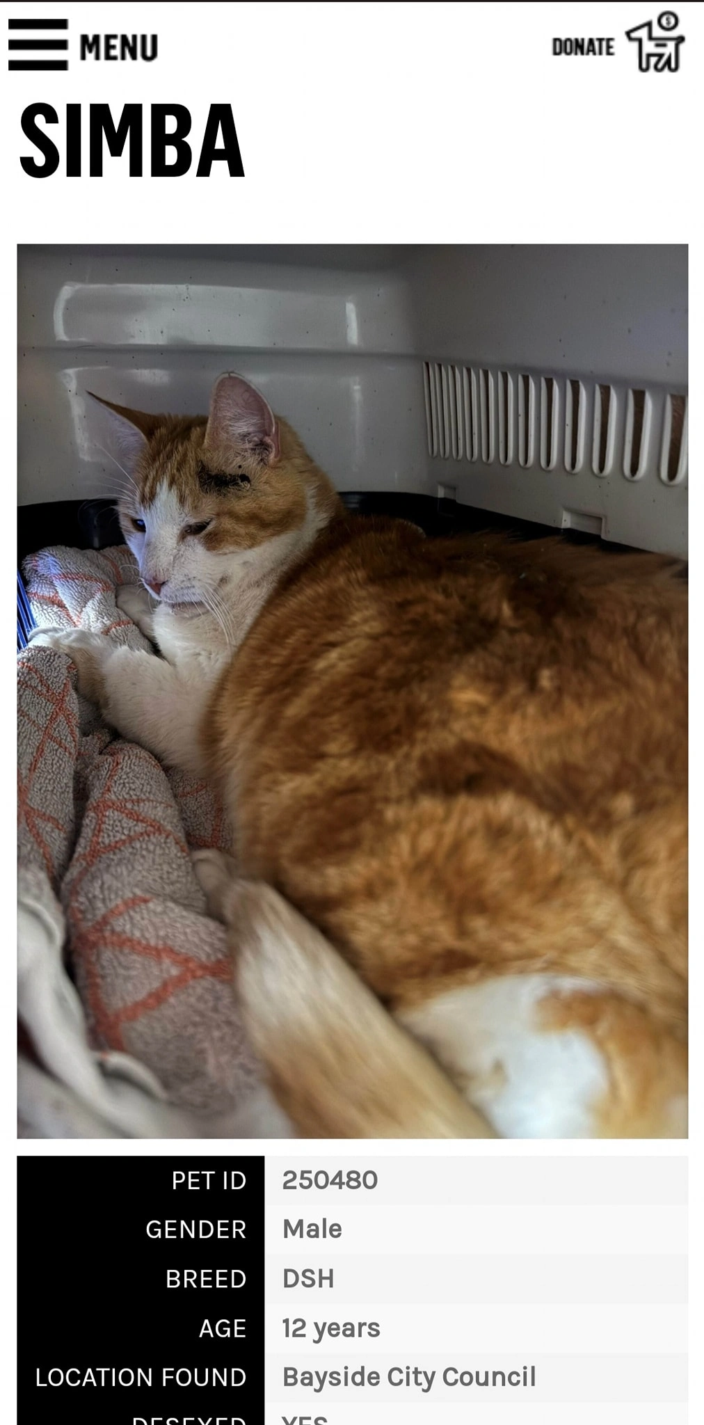 Do you know Simba? He is frequently seen at The Avenue, HURSTVILLE. Apparently, he is microshipped however the owner's number is disconnected. He is currently at Sydney cats and dogs home, contact number:95879611. He will be there until 1st of December. Please hit me up if you want to send or receive more information about Simba.