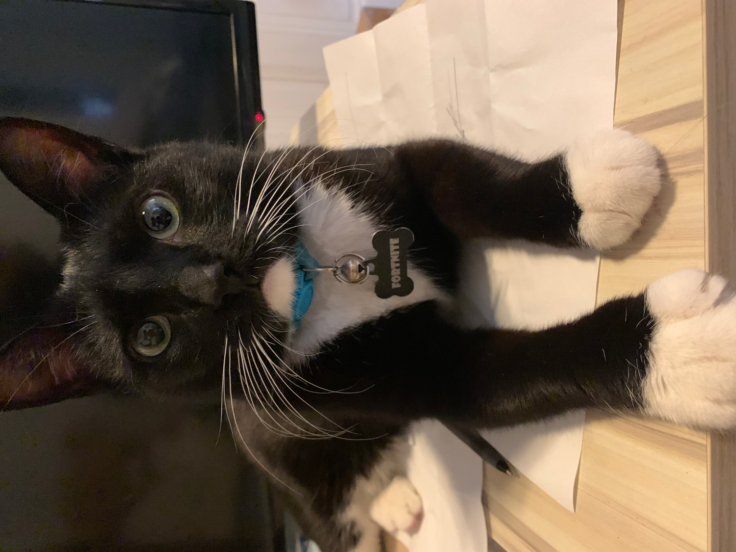 Spayed/fixed, vaccinated, rabies shot included. Responds also to "Miss Kitty."