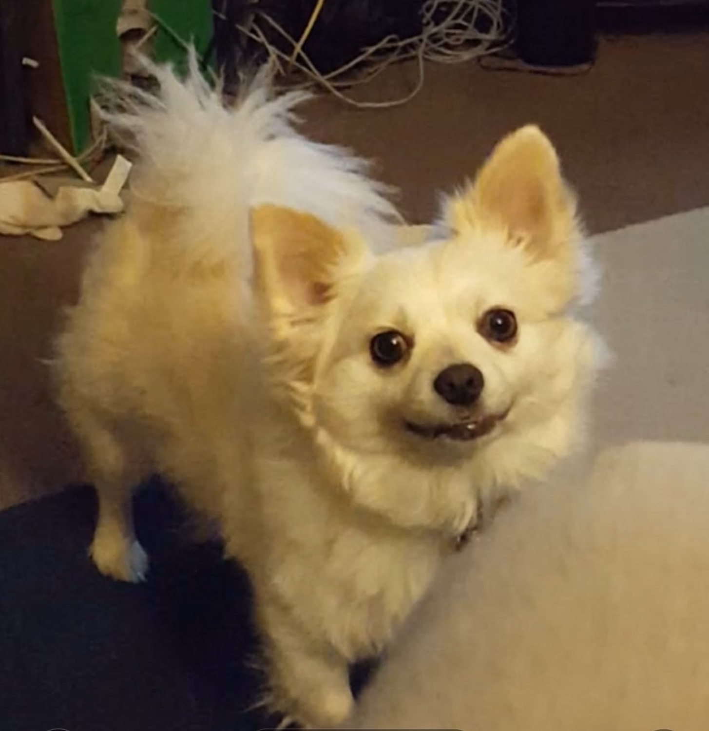 Extremely Friendly. loves car rides. seeks out attention from anyone. can be hyper and excited easily. he does have a collar on but I don't remember what it looks like. his tags are lost so they were not on his collar