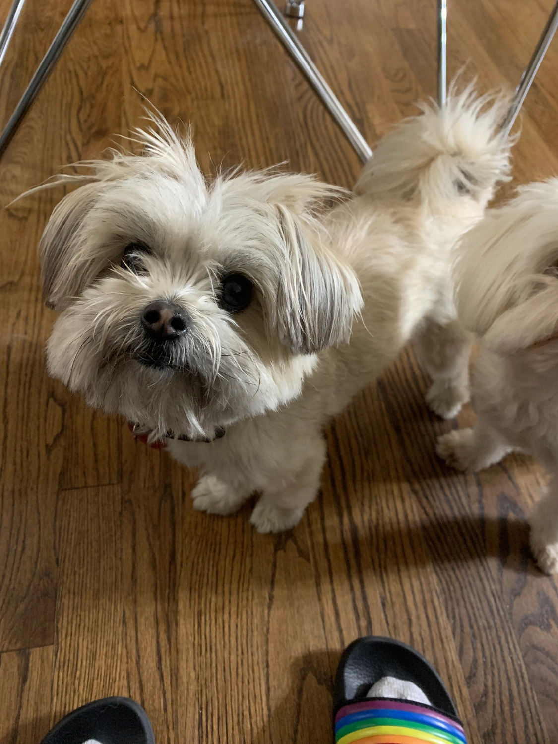 Frijol barks a lot, but is very friendly, especially with people. At first, he is a little wary of other dogs but quickly warms up to them.