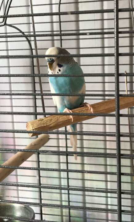 Cute little budgie, very skiddish, cage tipped over and he flew out. Didn’t know he could fly ????