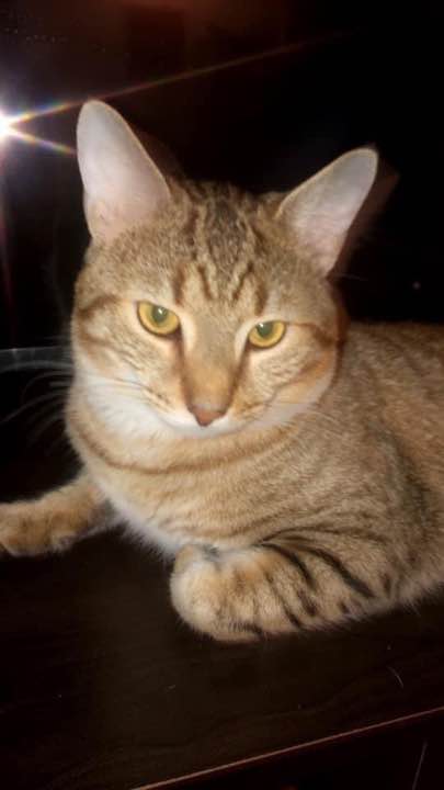 Neutered, mostly brown and black but has a reddish undertone on his head and stomach.