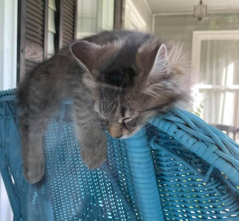 Kitten, 12 weeks old, small, gray stripes, medium fur