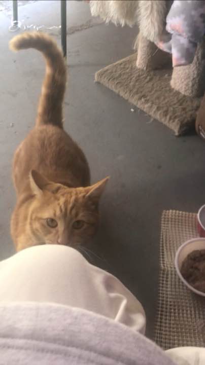 My baby boy is under a year old, he’s mostly orange/tan with cream & tan colored markings. Has swirl markings on both his sides of his tummy as well as a stripped tail as well. His eyes are green with yellowish tint and has white whiskers.