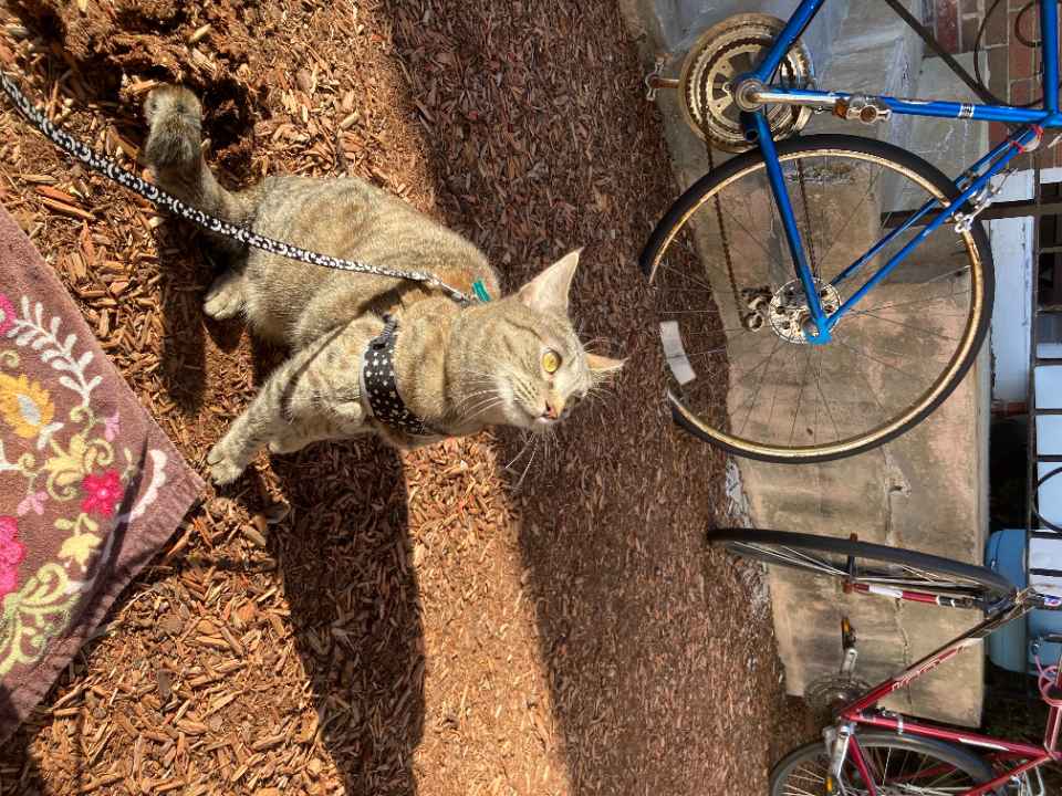 indoor cat. knows her name, likes treats and headbutting hands. very friendly.