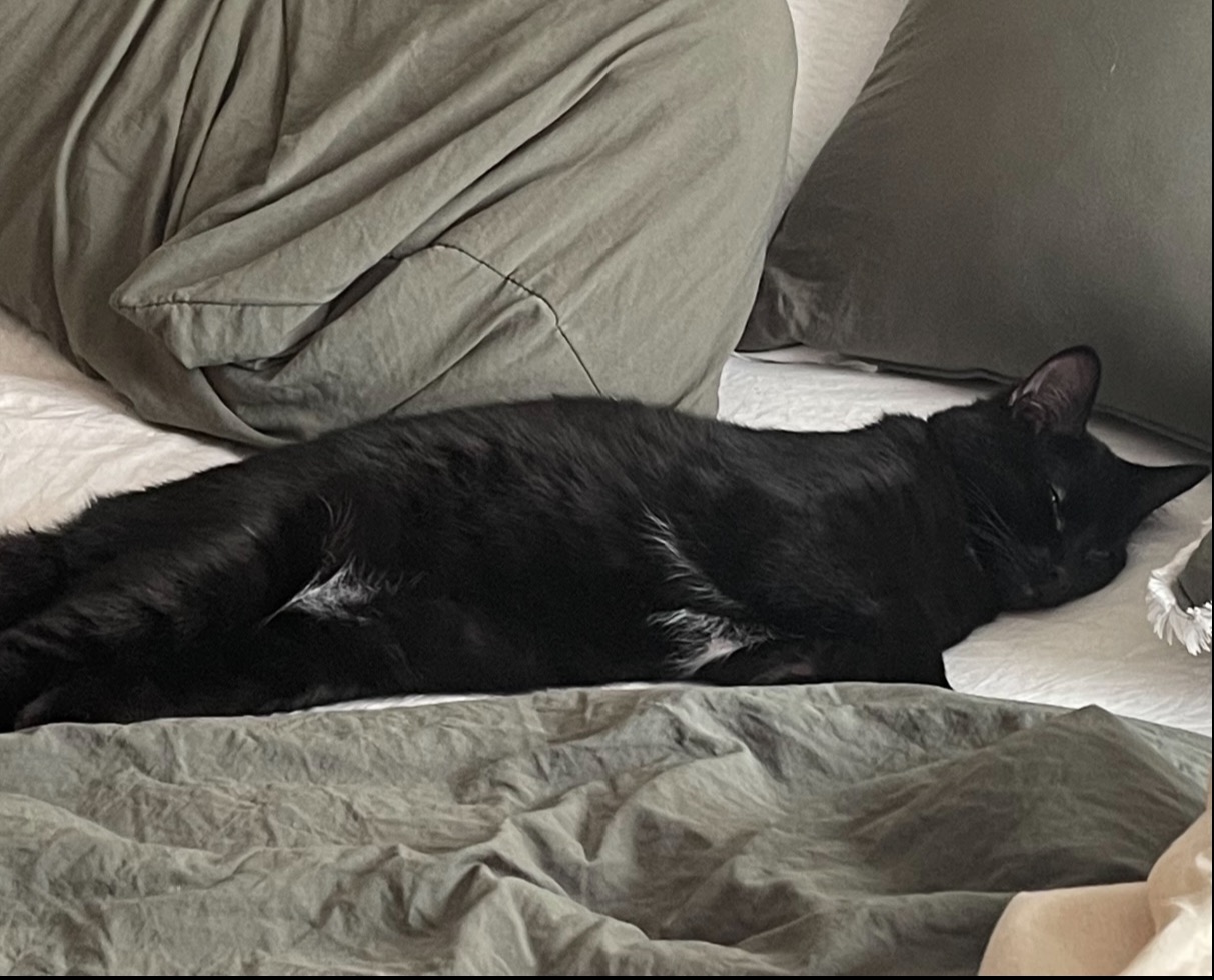 small patch of white on lower belly, small patch of white on chest, small patch of white under arms. Hidden stripes in coat. has all of his claws, and is not neutered.