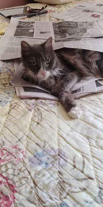 Tweety Bird has never been outside. Senior cat in very good health. Slipped out of the house when furniture was being removed from the home.