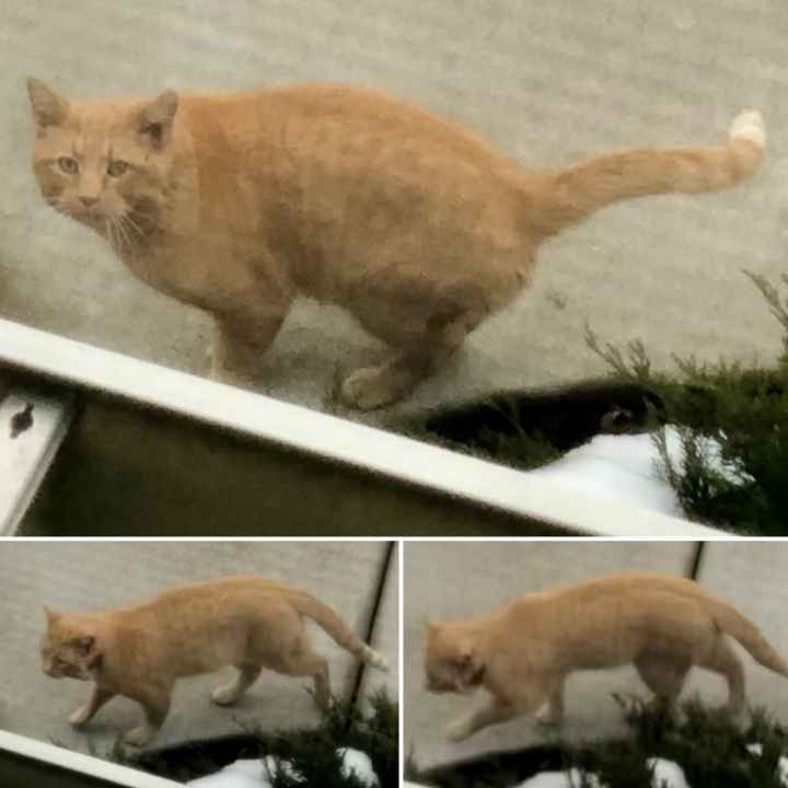 limping w/ injuries to left neck, left hind leg. skittish, wary. sighted periodically during the past week (about 1/8 - 1/15)