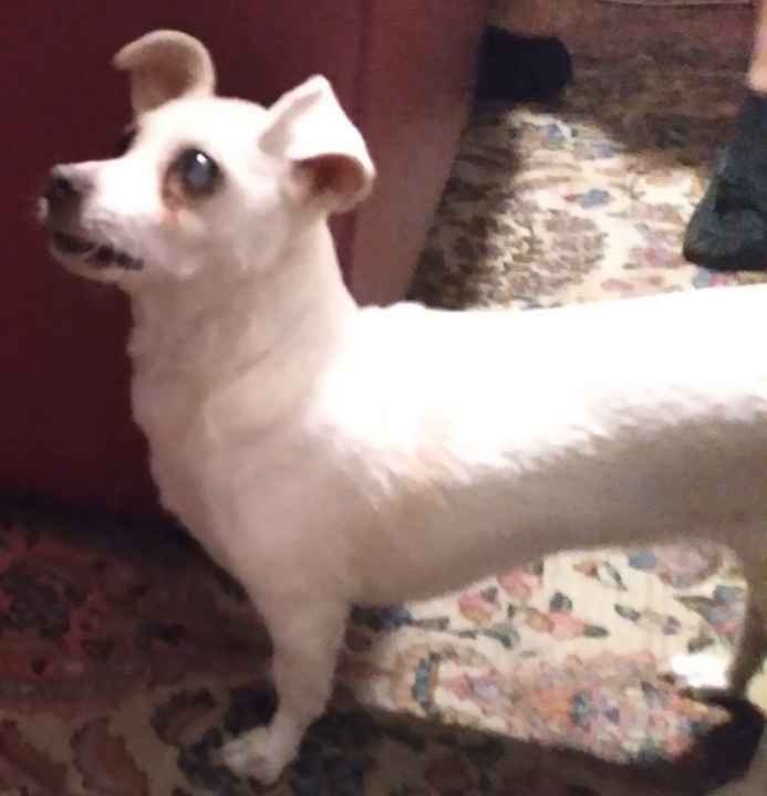 Looks like she has cataracts in her eyes. More in the left one. Cloudy white.