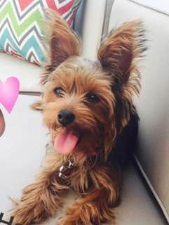 Light spot on her nose, short tail, yea cup yorkie, shy